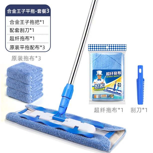 商品名称:世家合金平板拖把 原装布*3+吸水除尘布*1(送刮板)单位:套