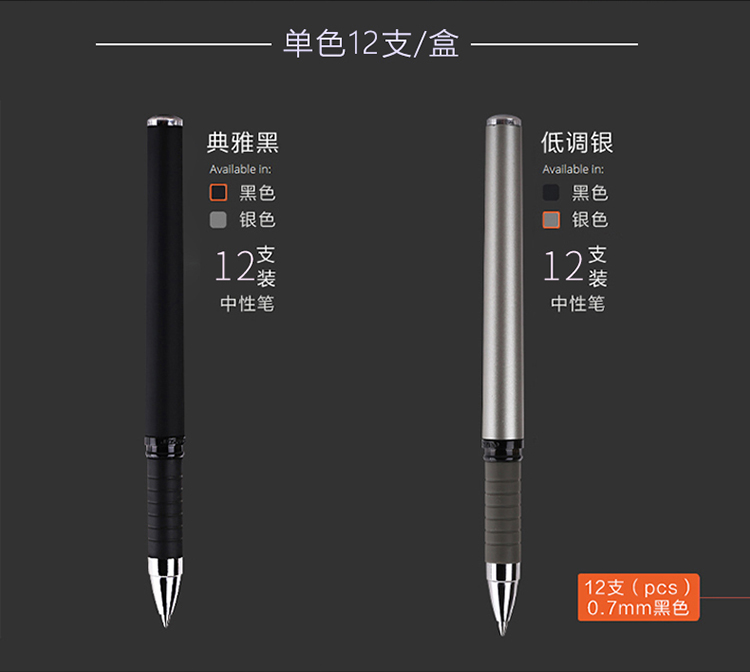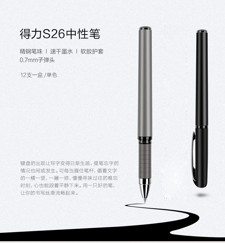 商品名称:得力(deli)0.7mm黑色办公中性笔 碳素水笔签字笔 12支/盒S26