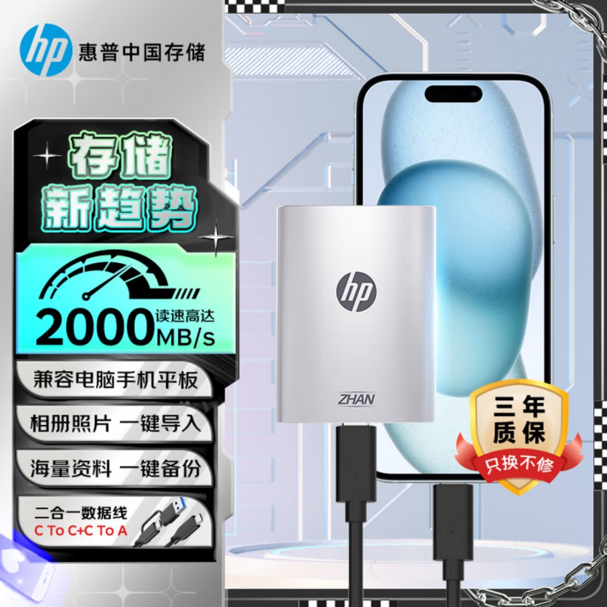 惠普512G战移动固态硬盘 银色