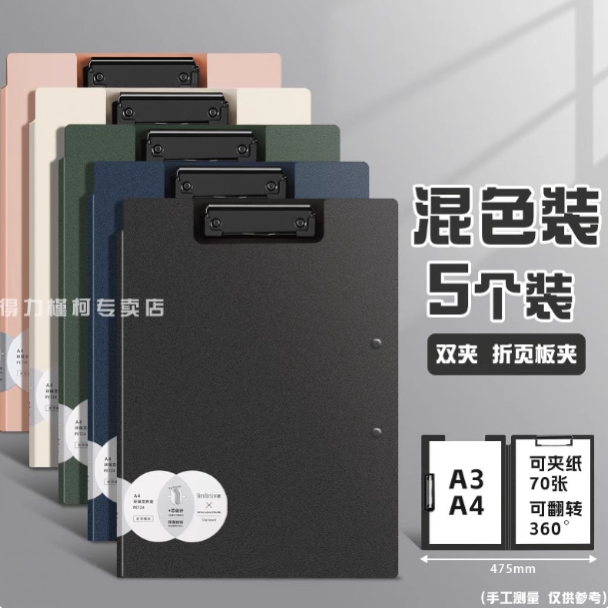 商品名称:得力A4折页板夹双夹款 黑+蓝+绿+橙+白 5个/组 单位:组