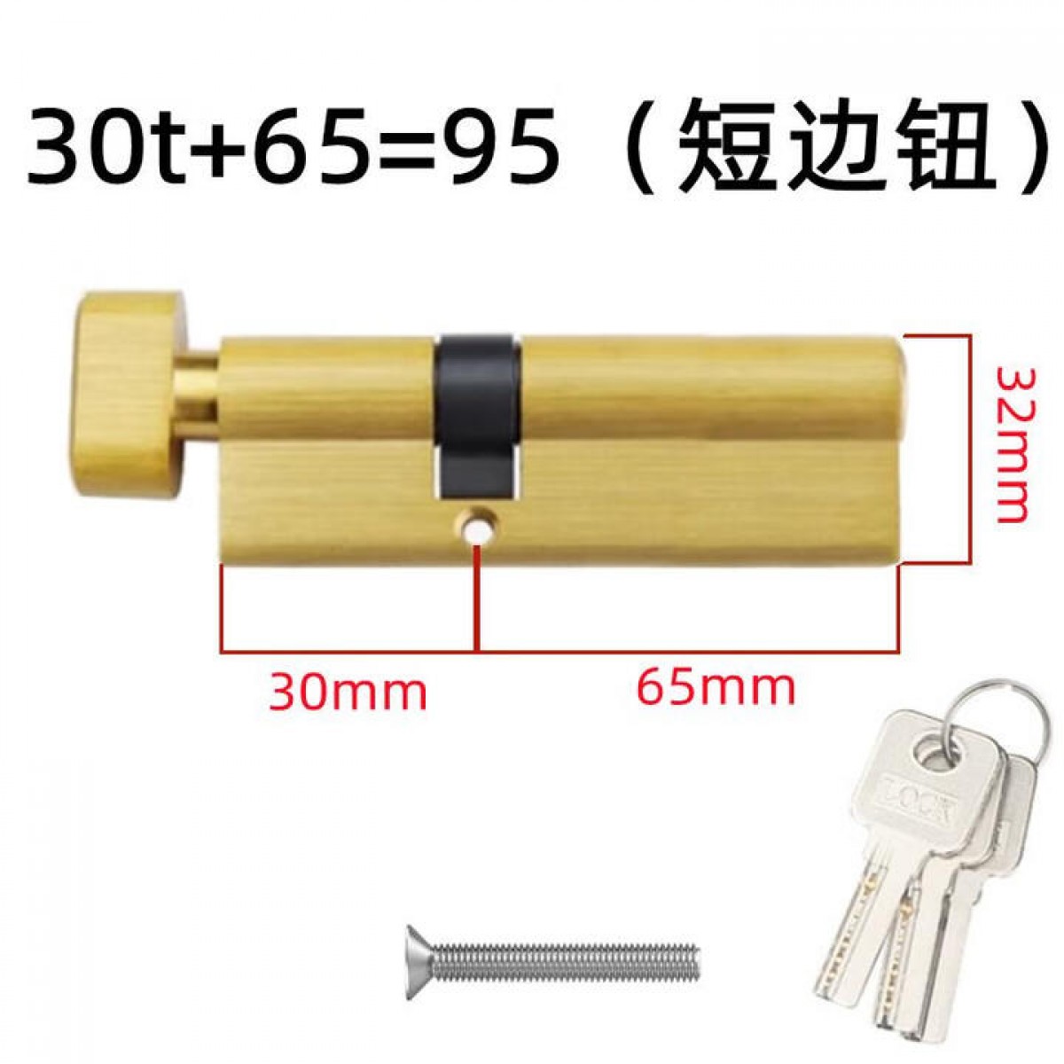商品名称:断桥铝门锁芯 双开90偏心锁芯 30t+65=95短边钮 单位:个