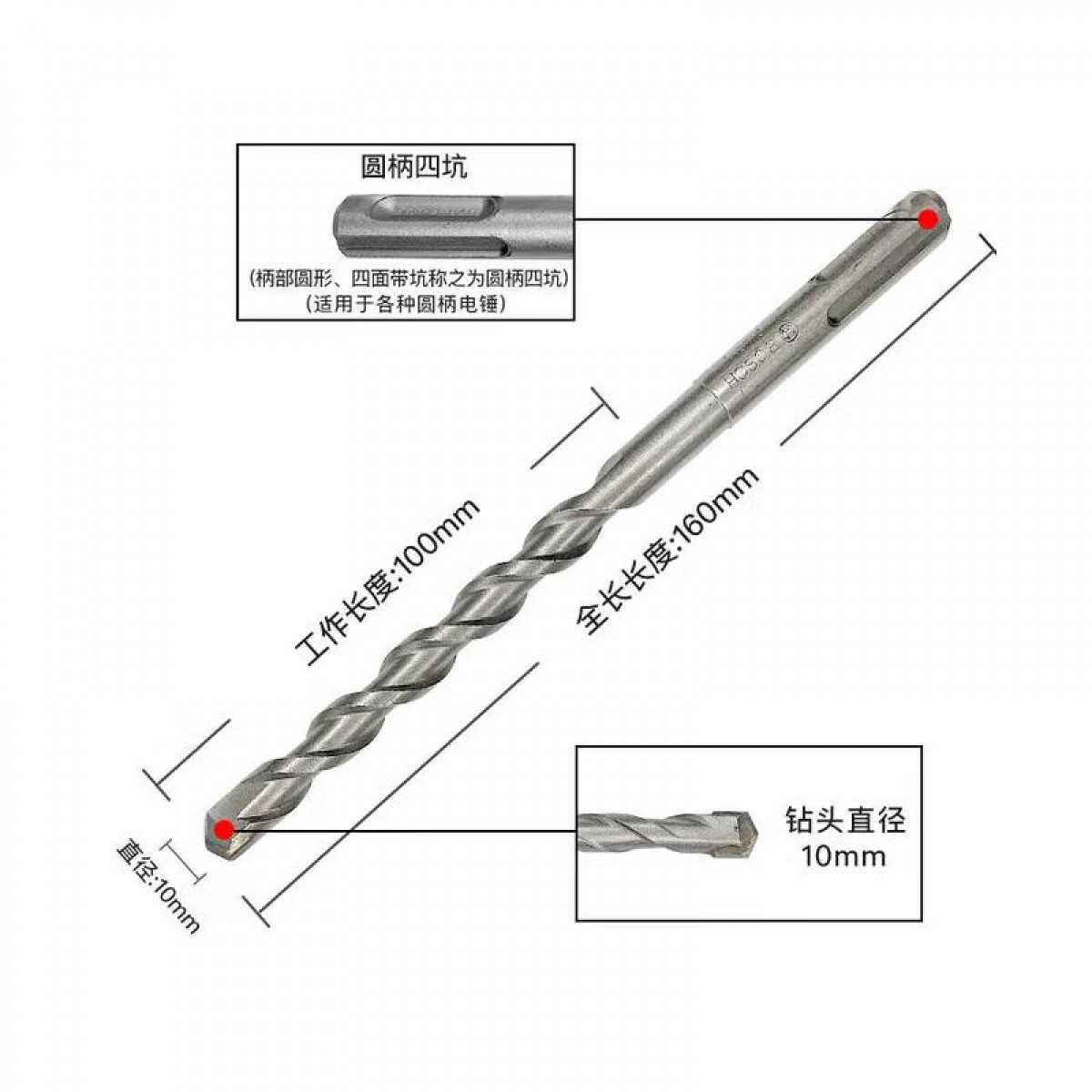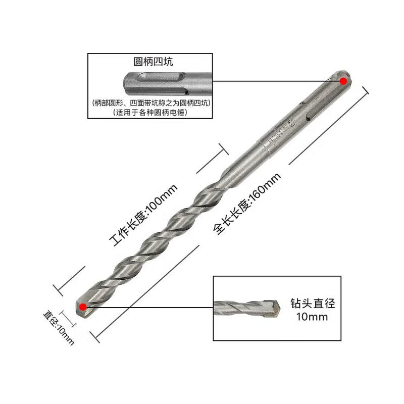 博世冲击电锤钻头 四坑圆柄10*160mm/支 单位:支