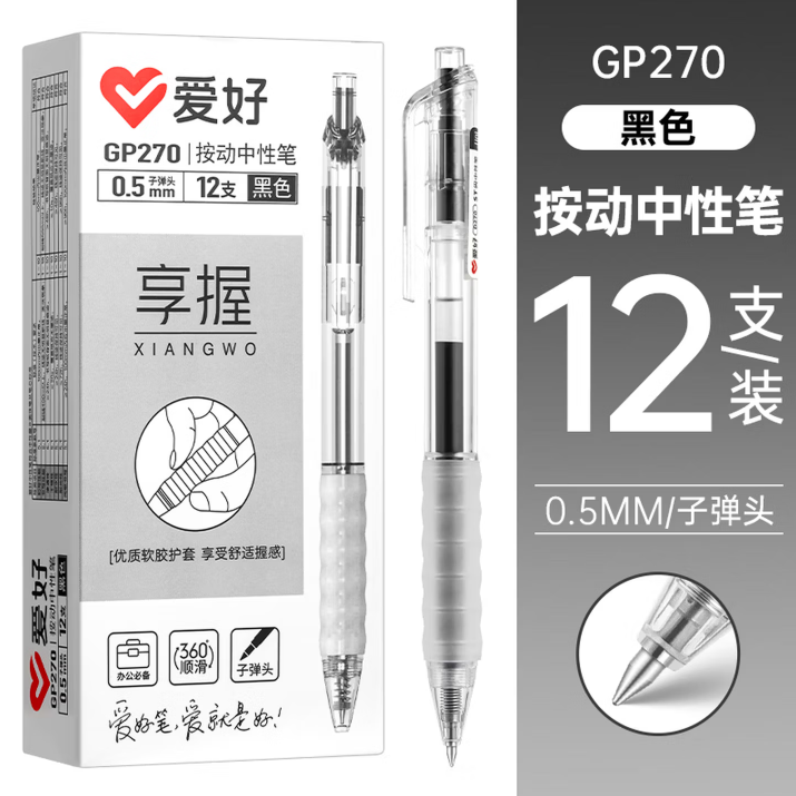 爱好GP270中性笔黑色 12支/盒 单位:盒