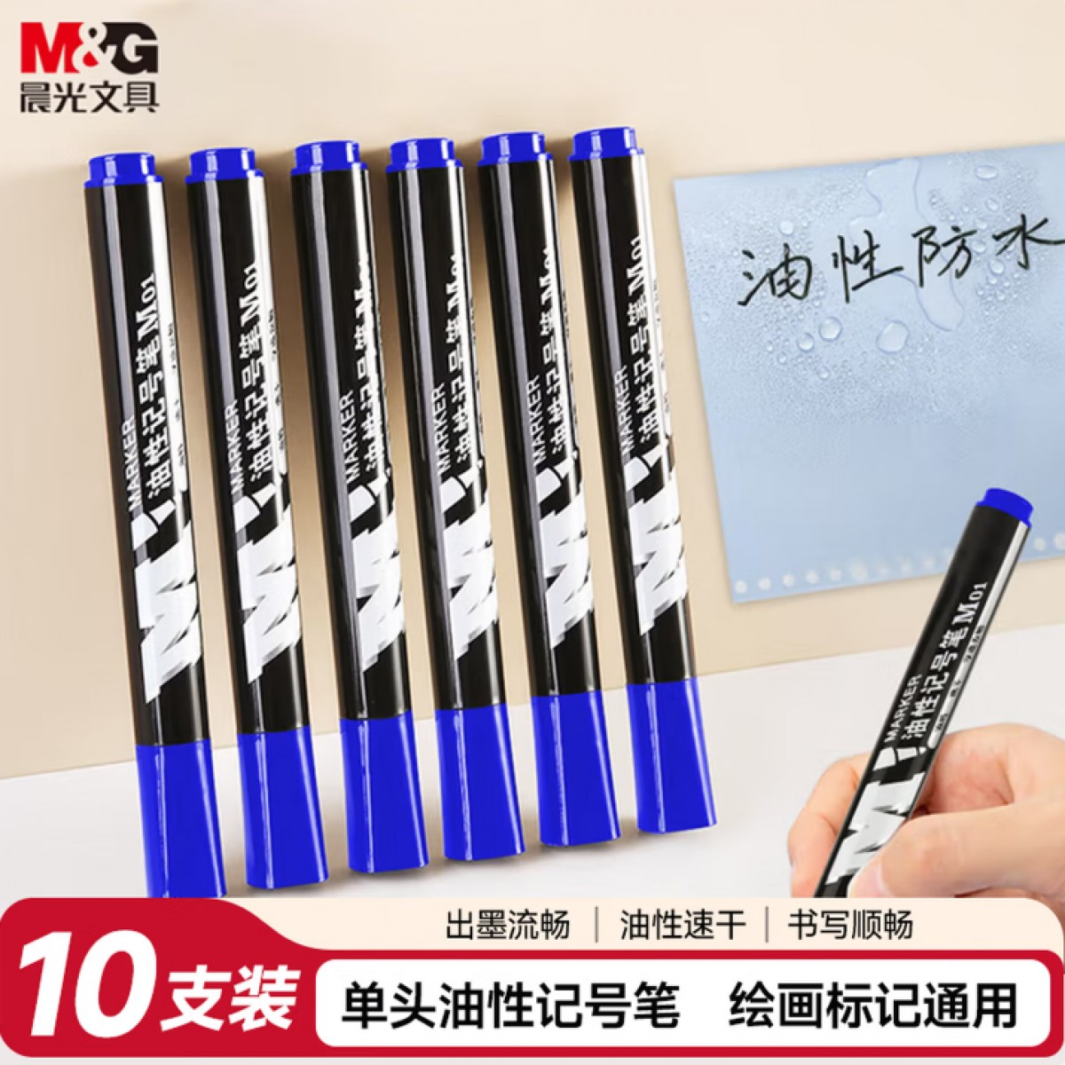 晨光APMY2204油性记号大头笔 蓝色 10支/盒