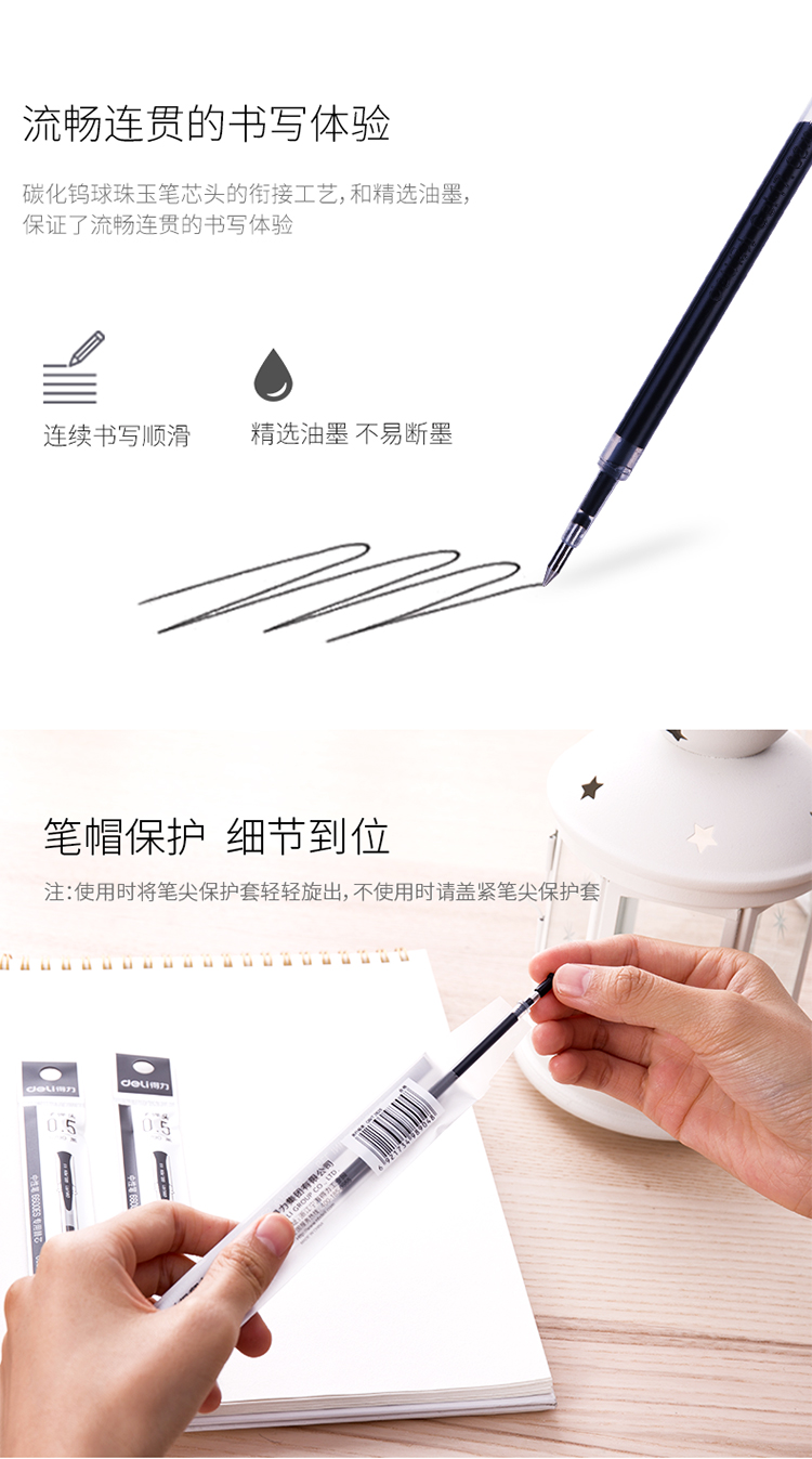 得力S790中性笔笔芯6600ES替芯0.5mm黑色子弹头20支/盒