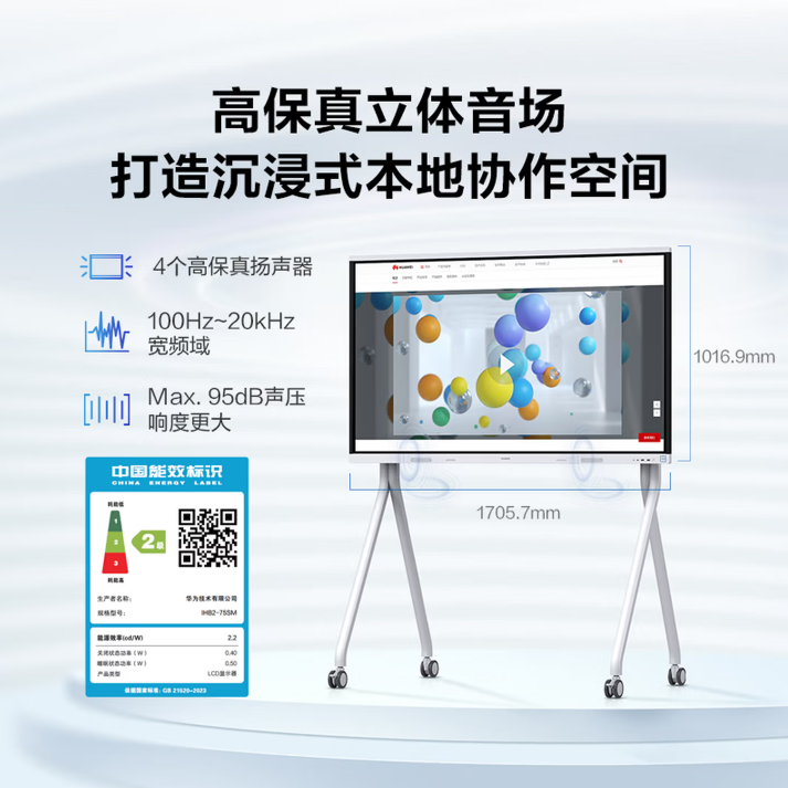 华为 IdeaHub B2 75寸智能会议平板触控一体机(IHB2-75PU)含OPS模块、投屏器、移动支架
