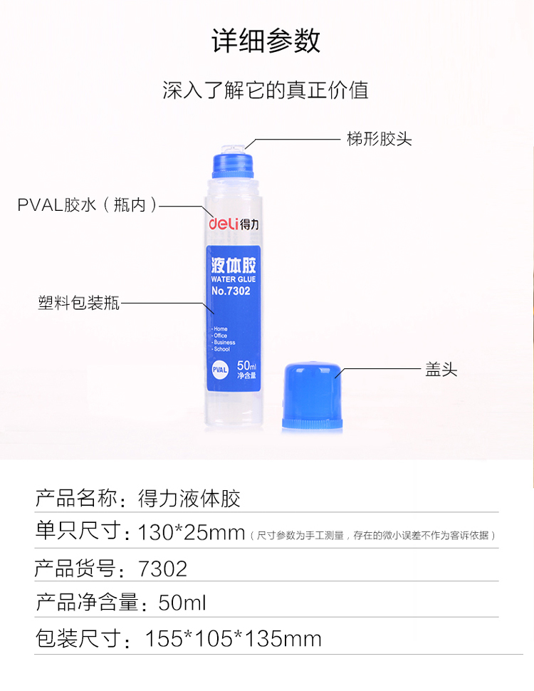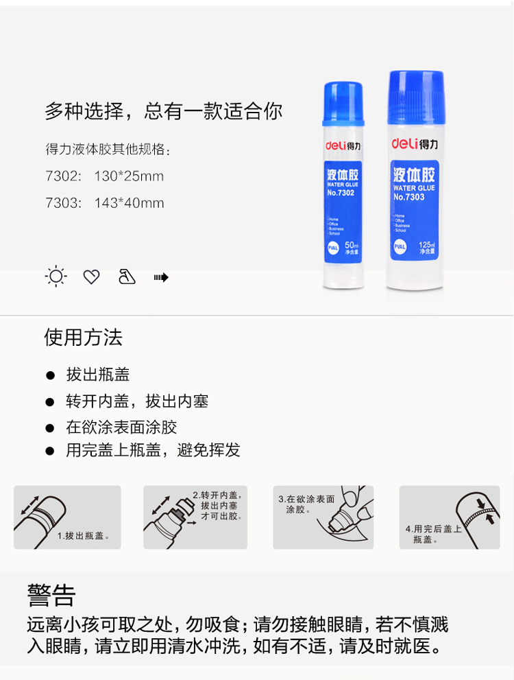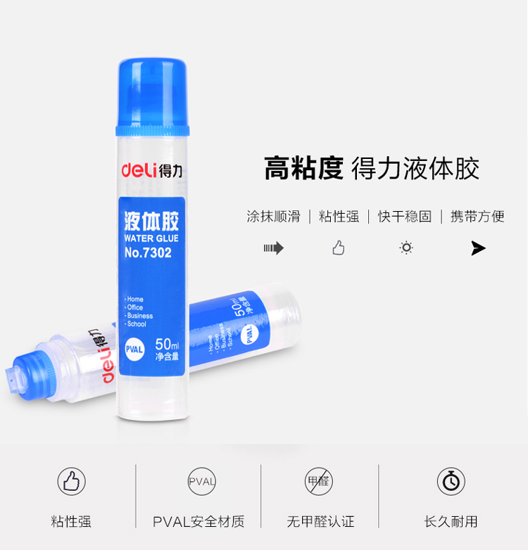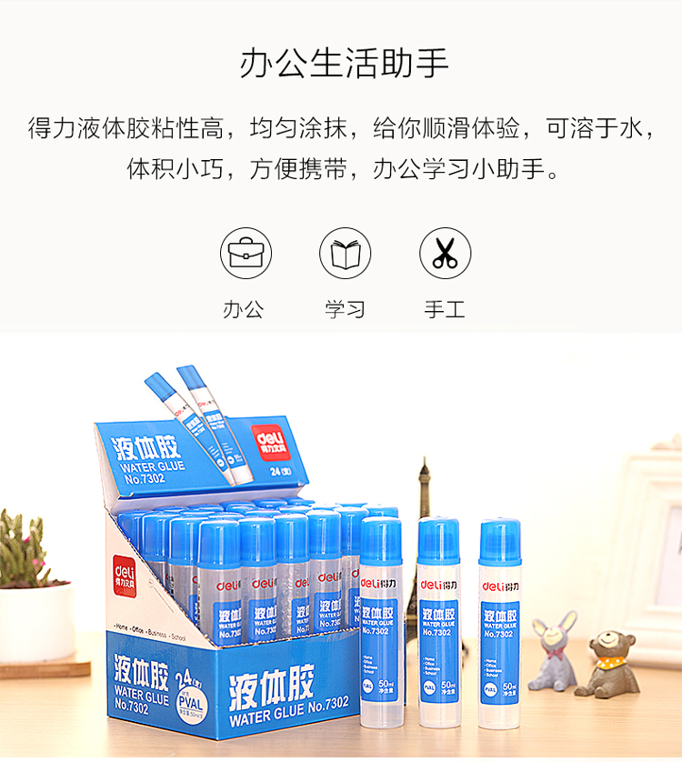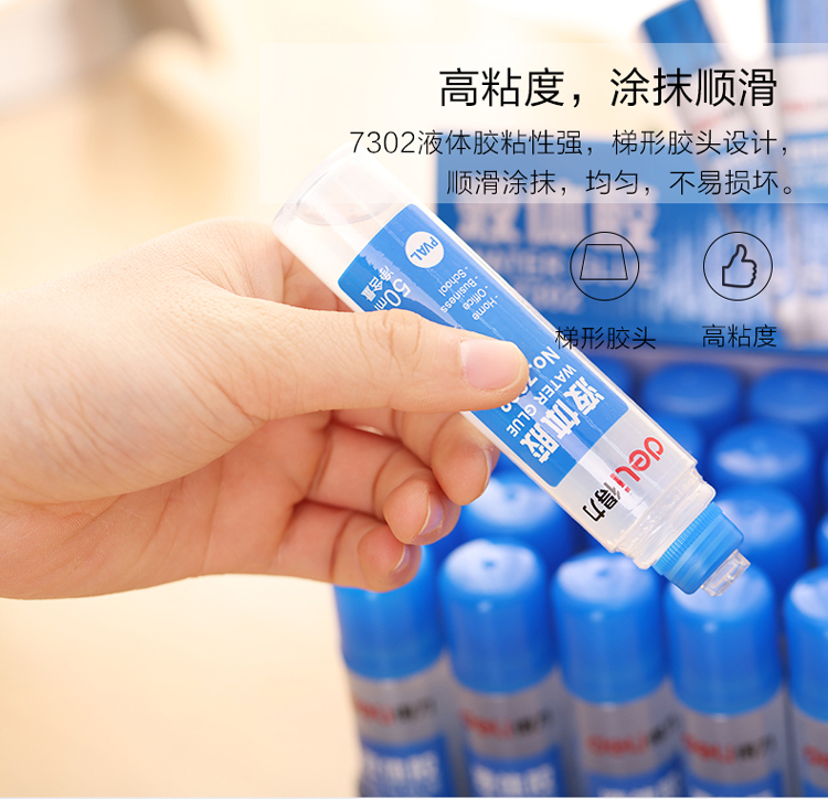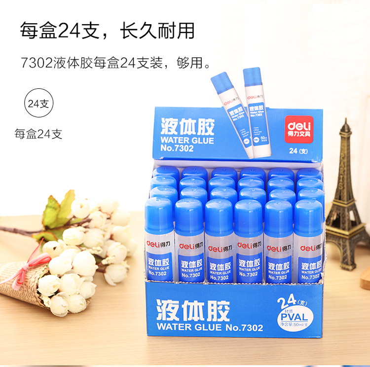 得力7302高粘度50ml液体胶水 24支/盒 单位:盒
