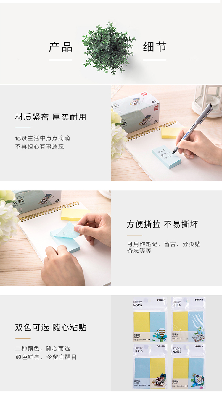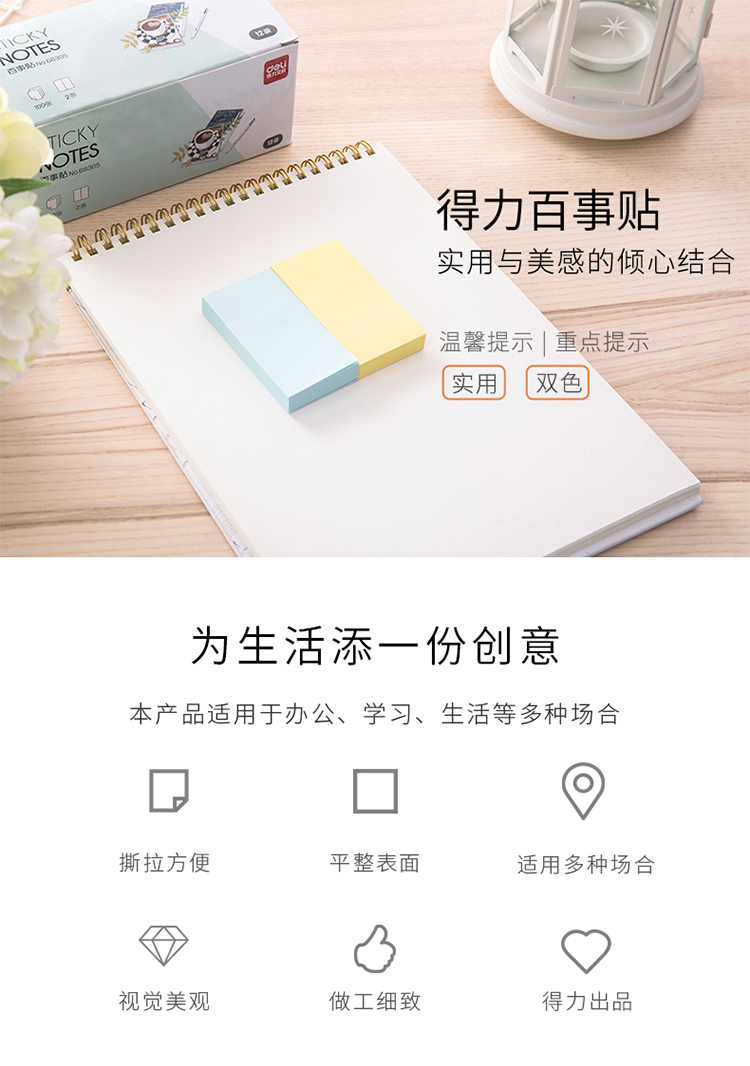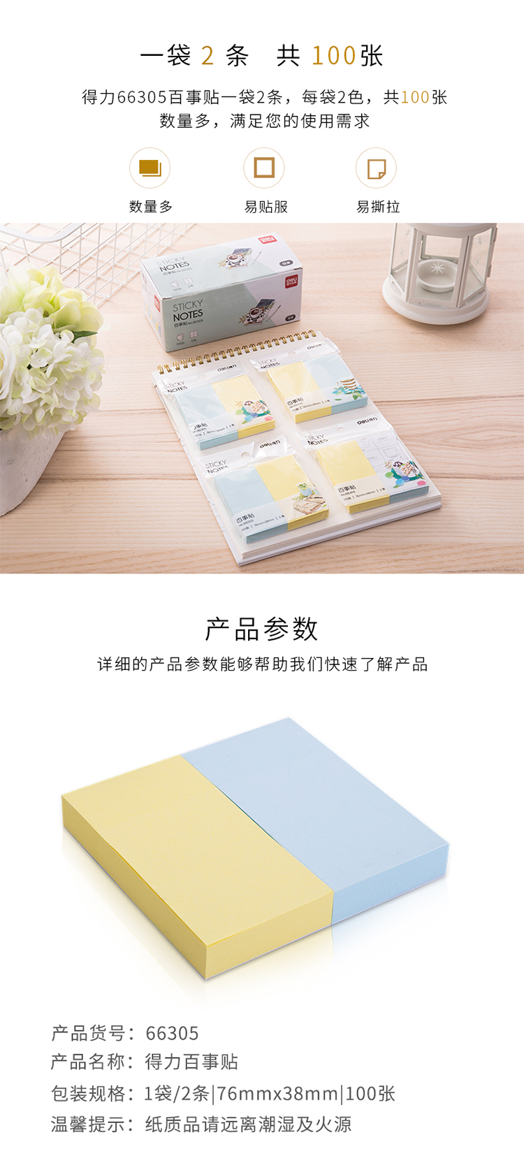 商品名称:得力66305便签纸/便签本/便利贴/百事贴/易事贴100张2色