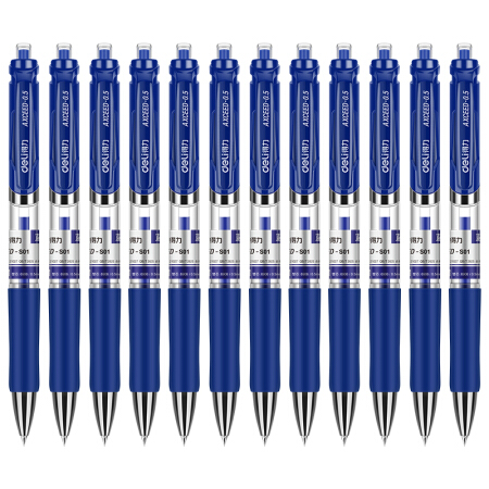 得力(deli)S01蓝色0.5mm经典办公按动中性笔水笔 子弹头签字笔 12支/盒