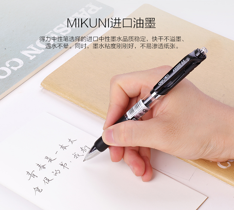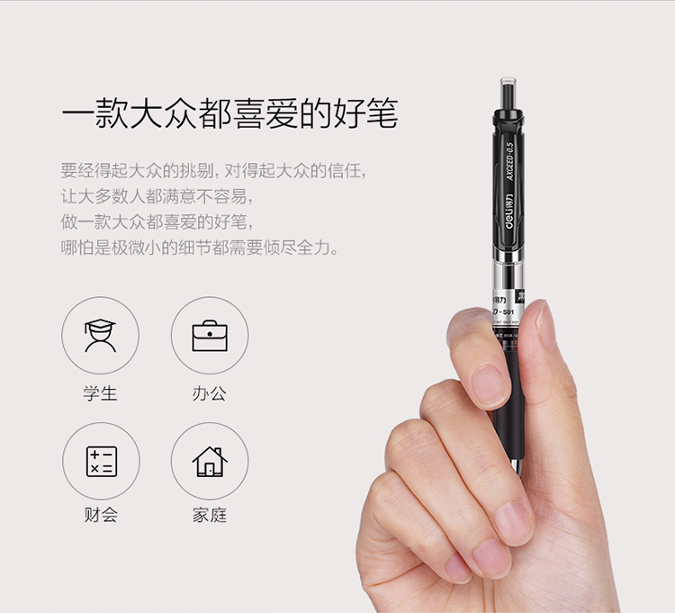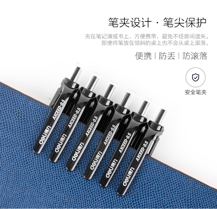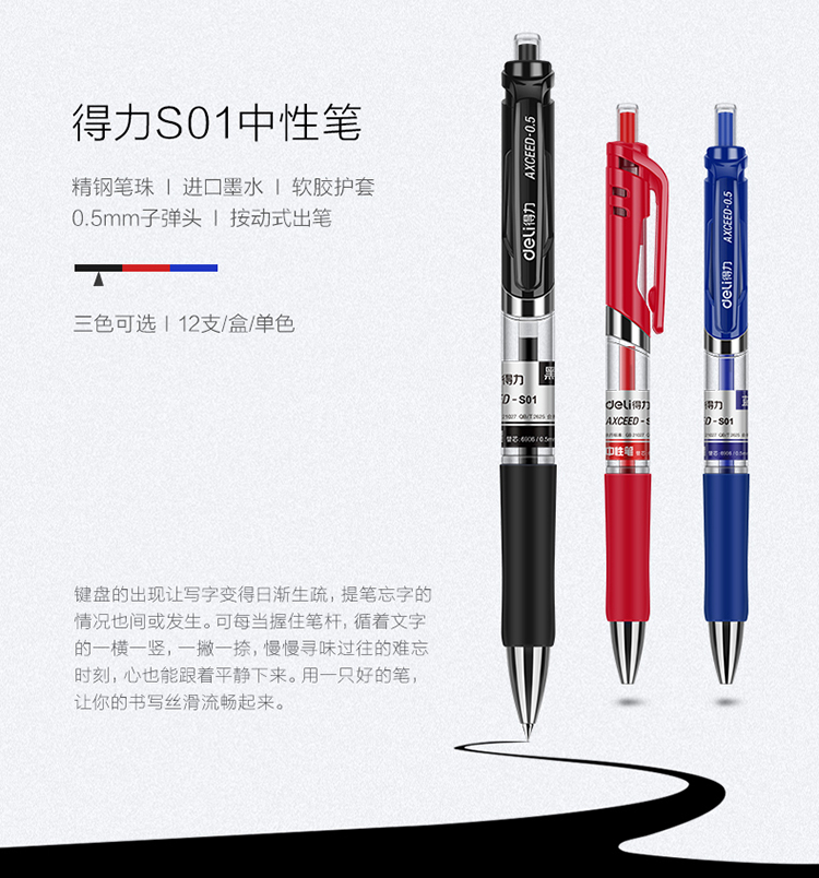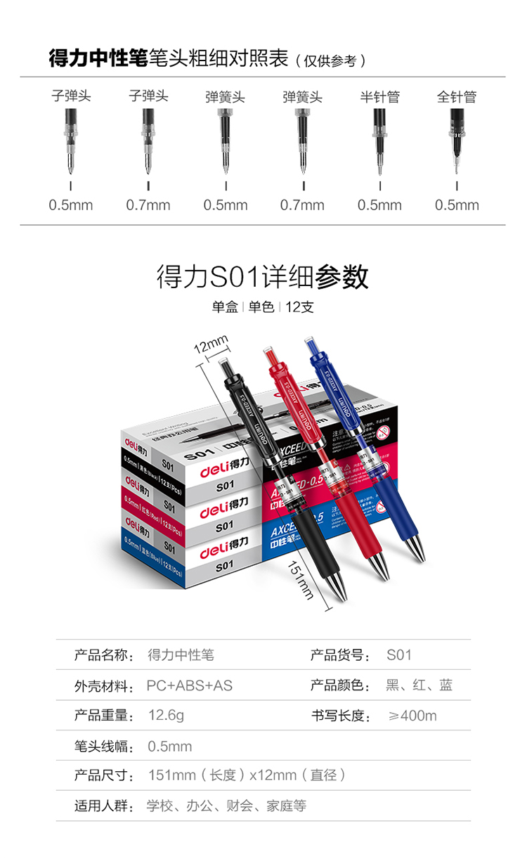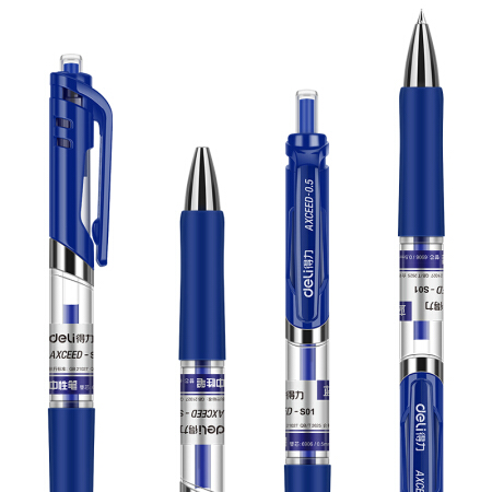 商品名称:得力(deli)S01蓝色0.5mm经典办公按动中性笔水笔 子弹头签字笔 12支/盒