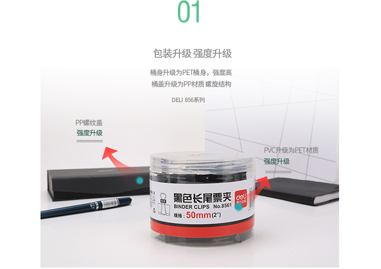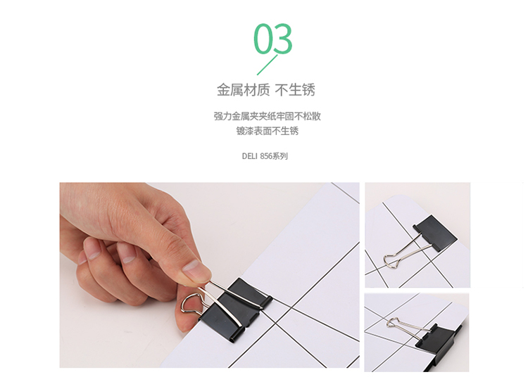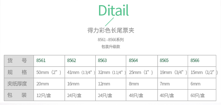 商品名称:得力8566 黑色长尾票夹 60只15mm 小号