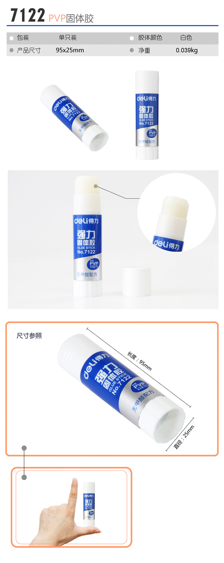 商品名称:得力7122 pvp材质强粘性固体胶棒 21g/支 单位:支