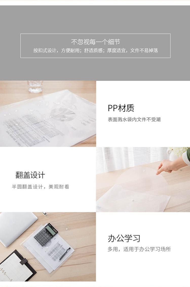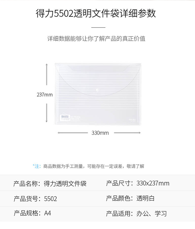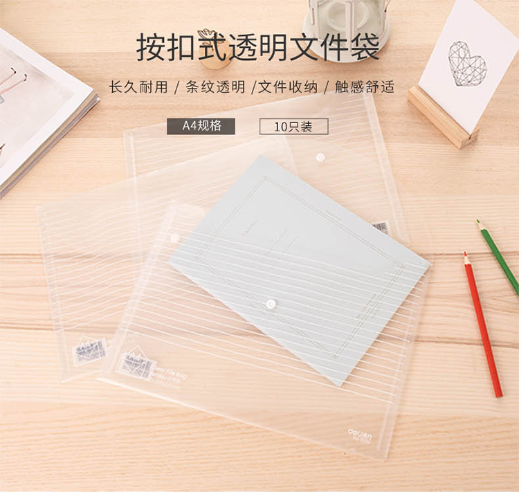 商品名称:得力(deli)10只A4加厚镜面文件袋 透明按扣档案袋资料袋 5502