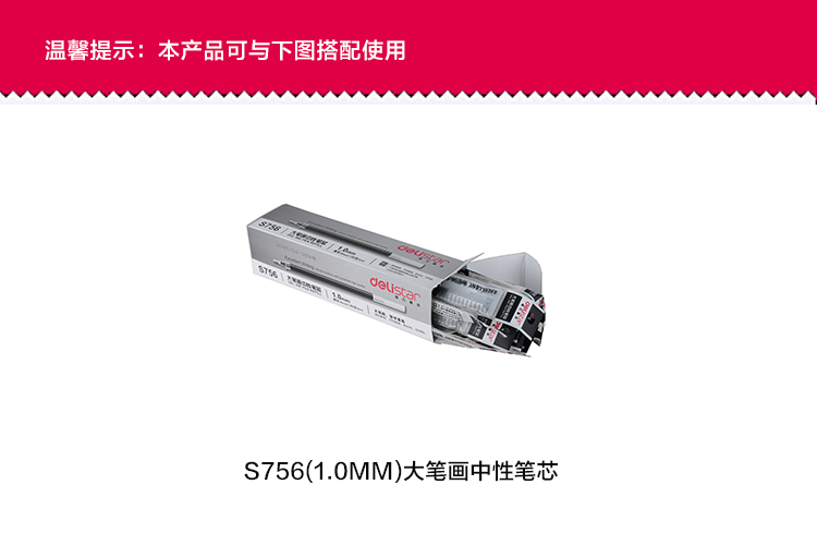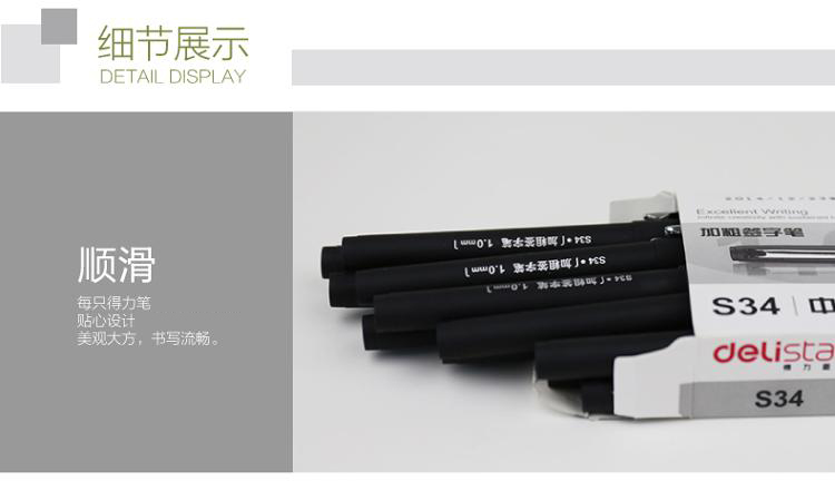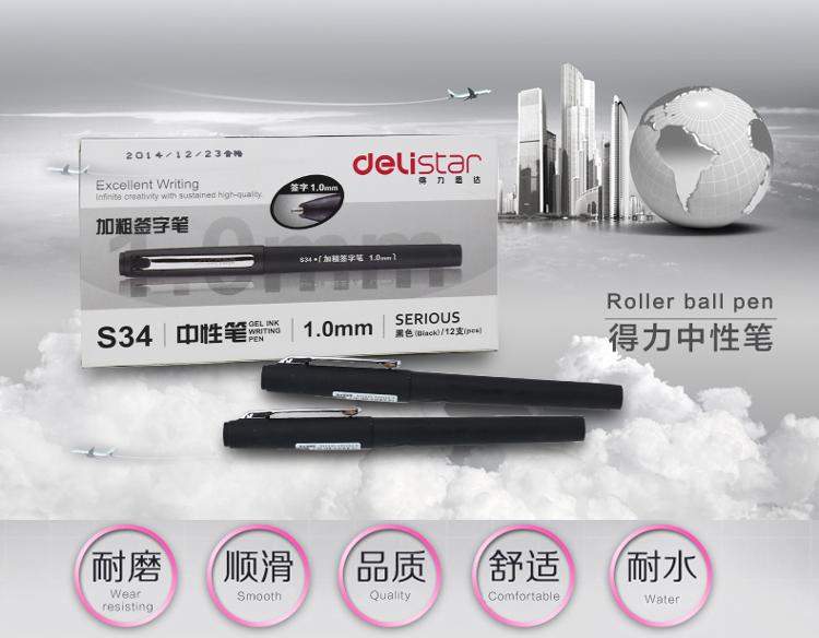商品名称:得力(deli)1.0mm黑色加粗签字中性笔 12支/盒S34