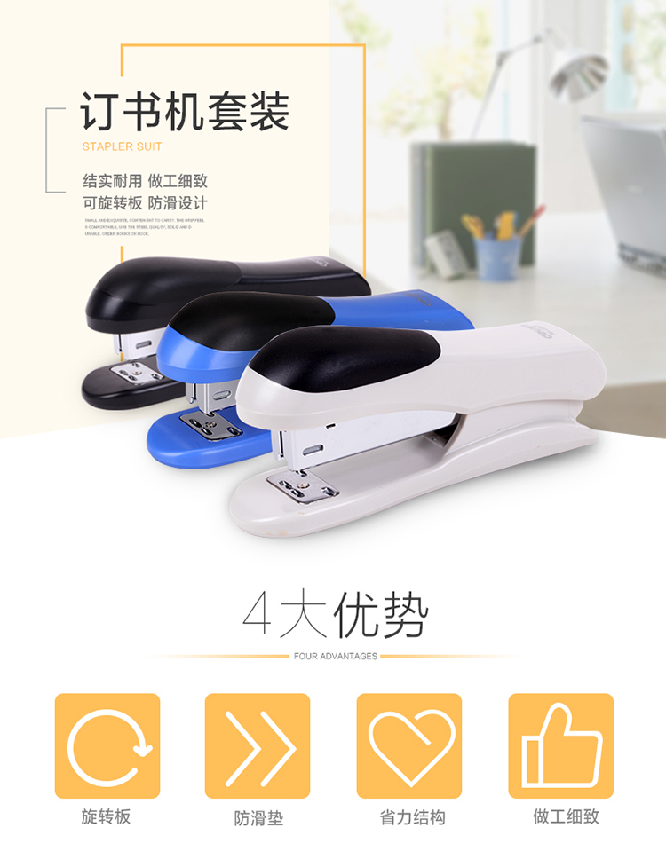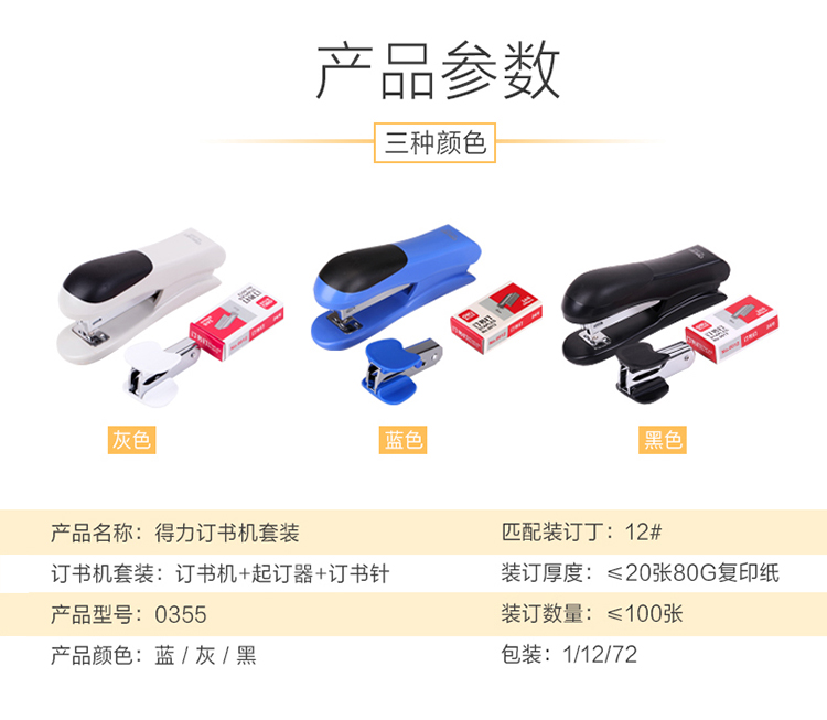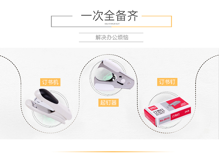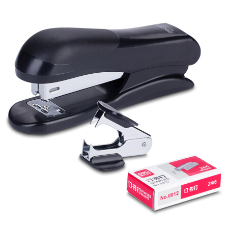 商品名称:得力(deli)0355 12#订书机套装(起订器+订书针+订书机) 颜色随机