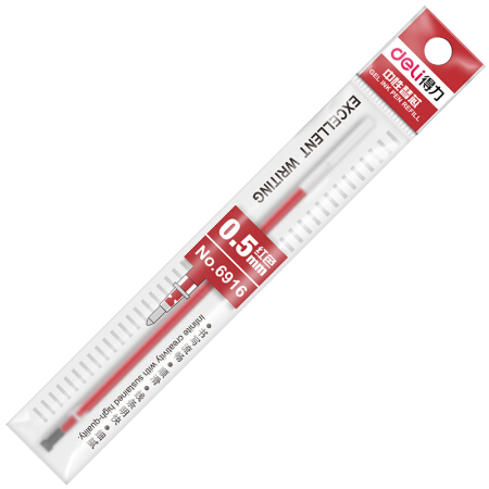 得力6916中性笔笔芯 水笔签字笔子弹头替芯 20支/盒 0.5mm 红色