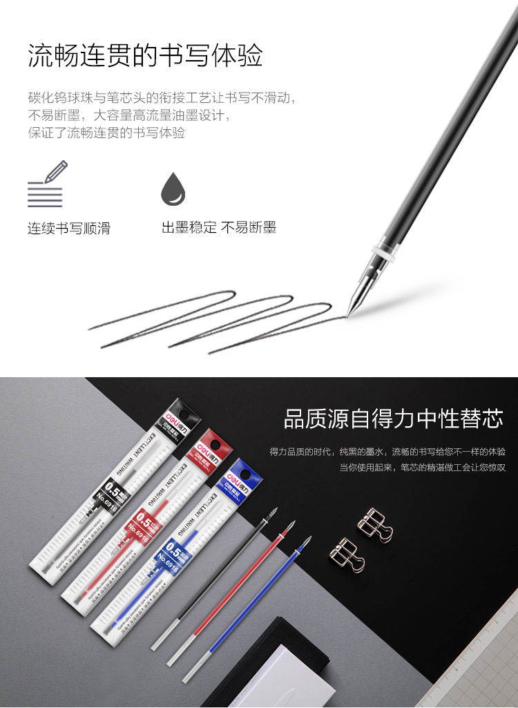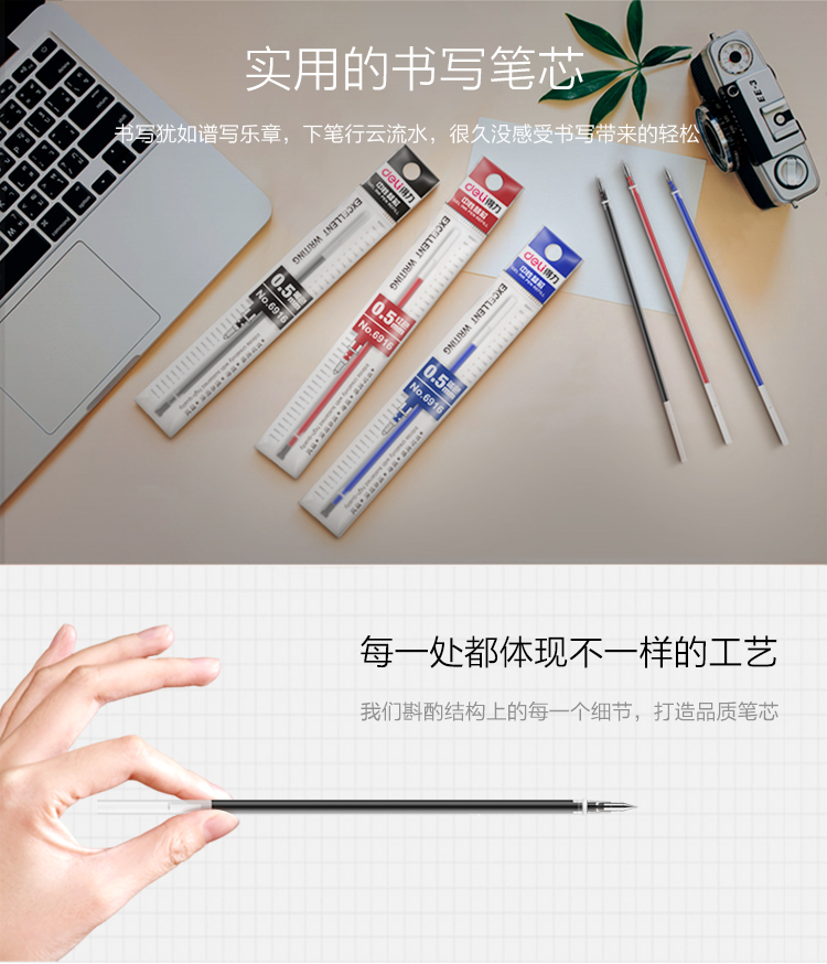 商品名称:得力6916中性笔笔芯 水笔签字笔子弹头替芯 20支/盒 0.5mm 红色