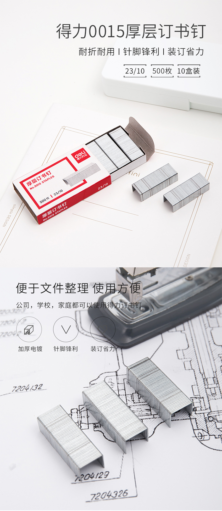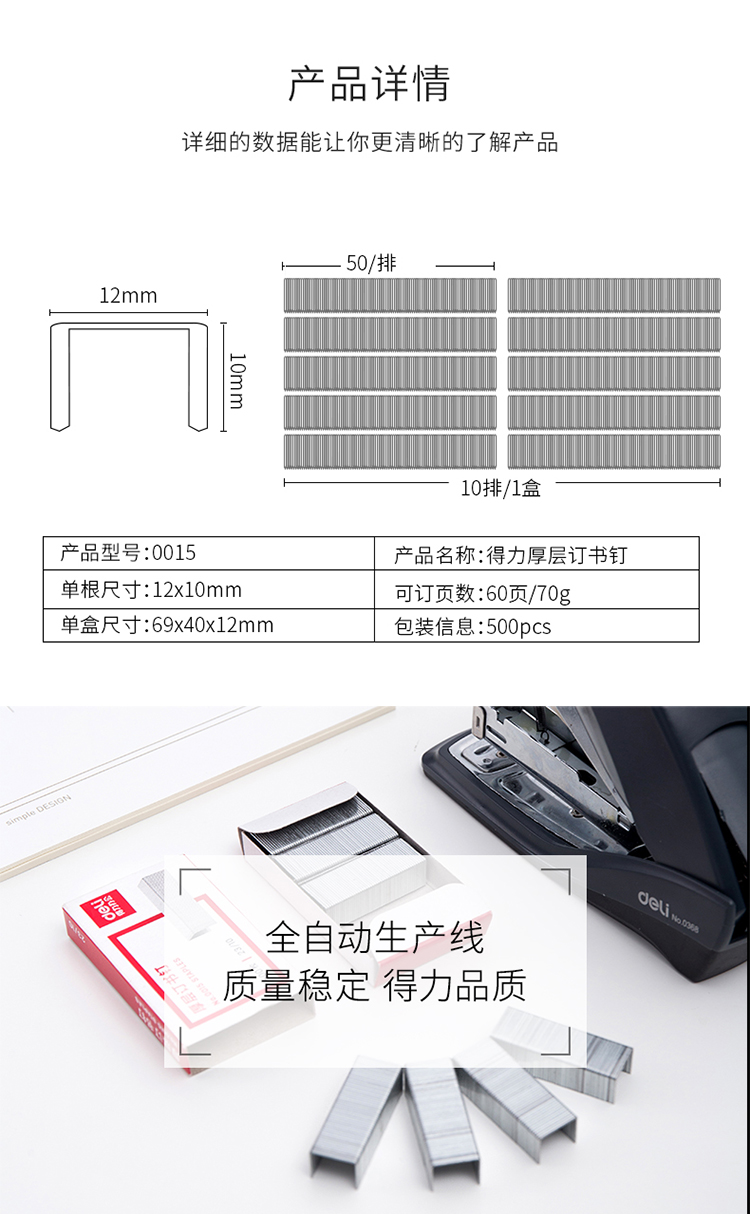 商品名称:得力(deli)0015 厚层订书钉23/1(1盒装)