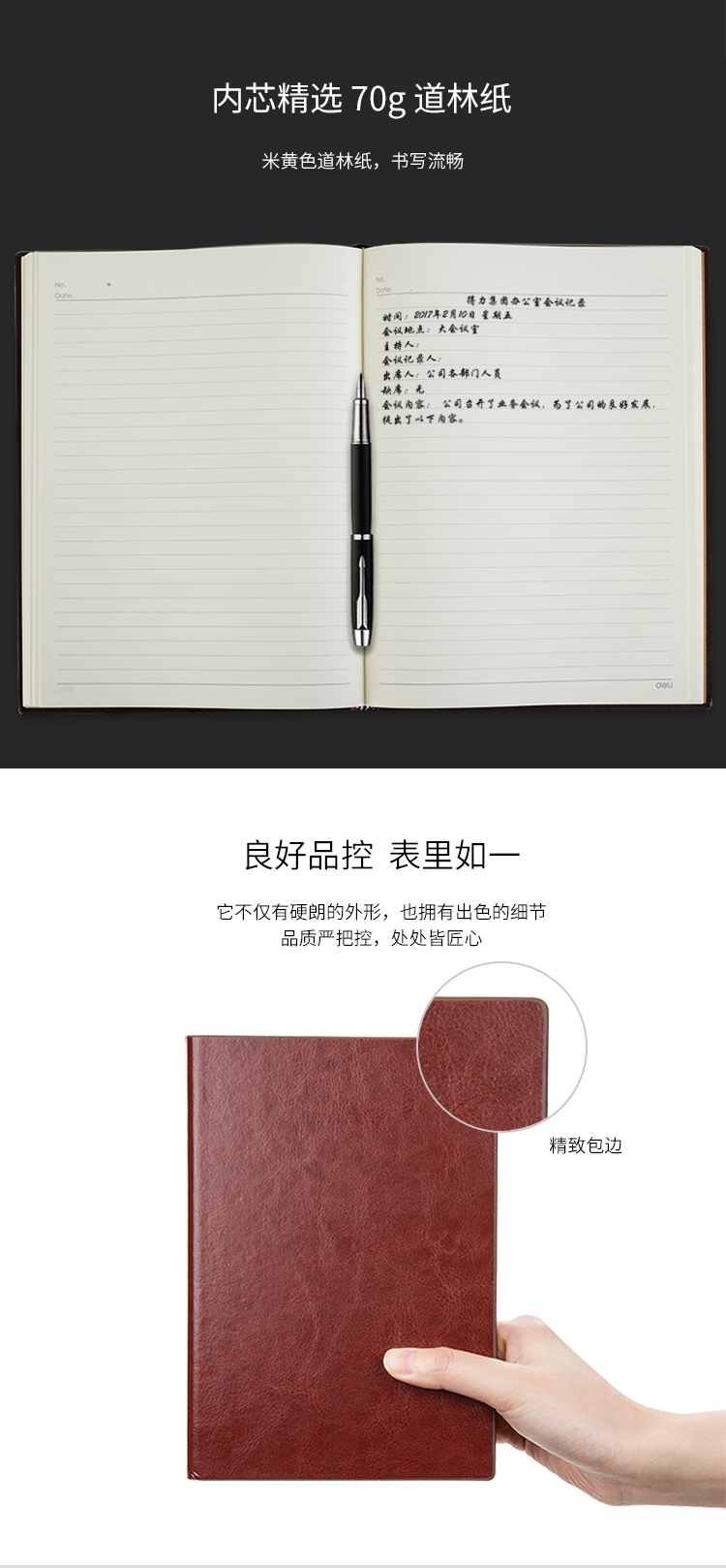商品名称:得力(deli)3186 商务皮面本记事本笔记本子 25K/160页商务棕