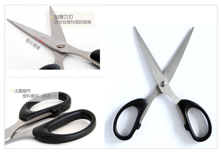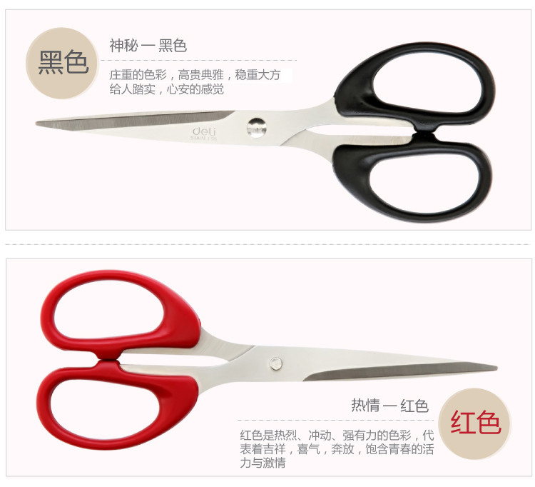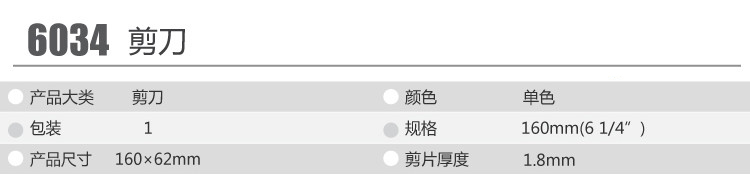 产品信息 Product Information 得力(DeLi)160mm办公剪刀(小)6034 颜色随机尺寸信息 Size Information 产品详细尺寸介绍产品细节 Product Details 实景展示 Virtual show 包装展示(采用PVC吊袋包装">