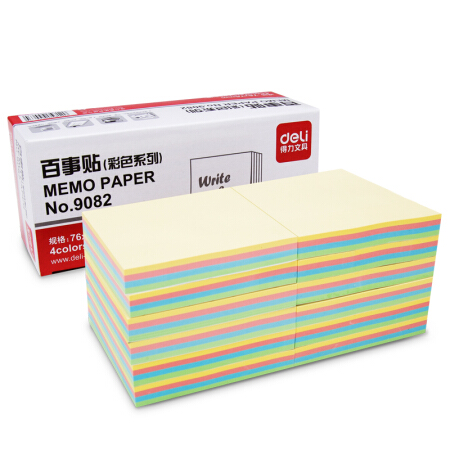 得力9082 百顺贴/便利贴(彩色系列)76×76mm100页 12包/盒