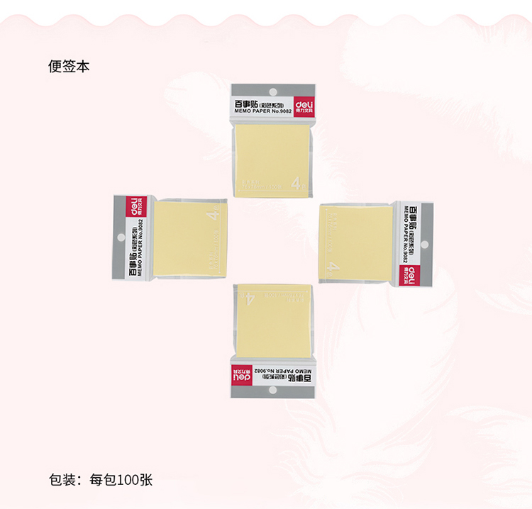 商品名称:得力9082 百顺贴/便利贴(彩色系列)76×76mm100页 12包/盒