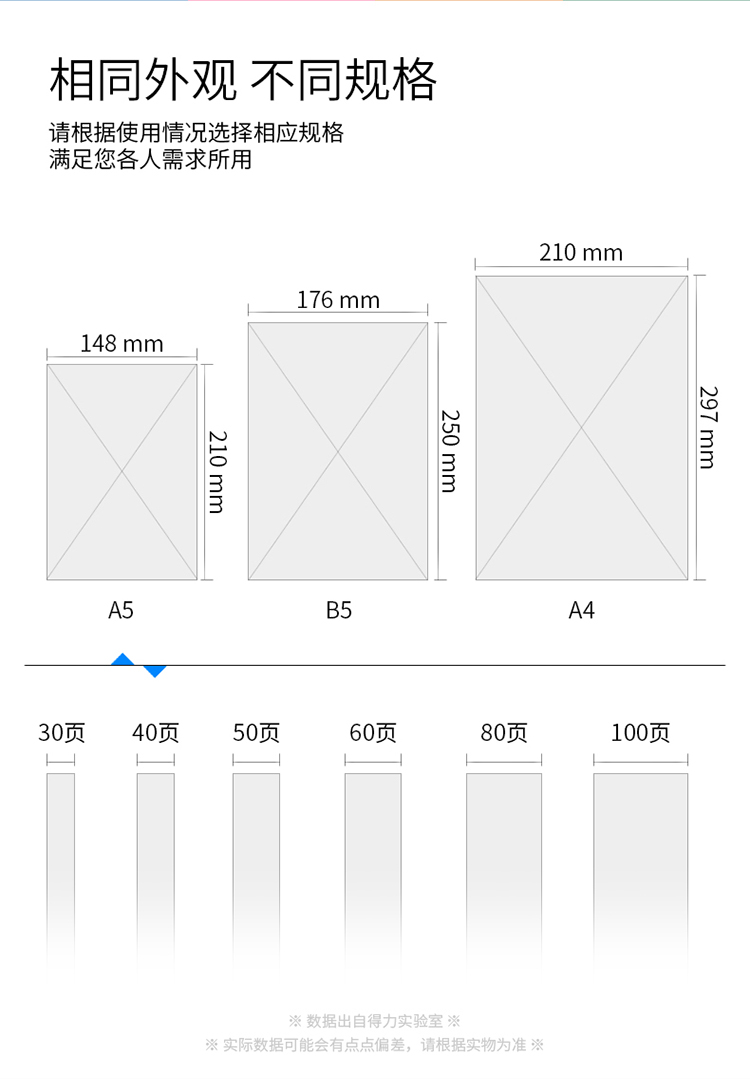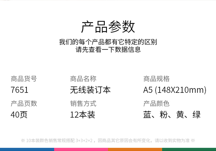 商品名称:得力7651无线装订软抄办公记事本12本A5/40页