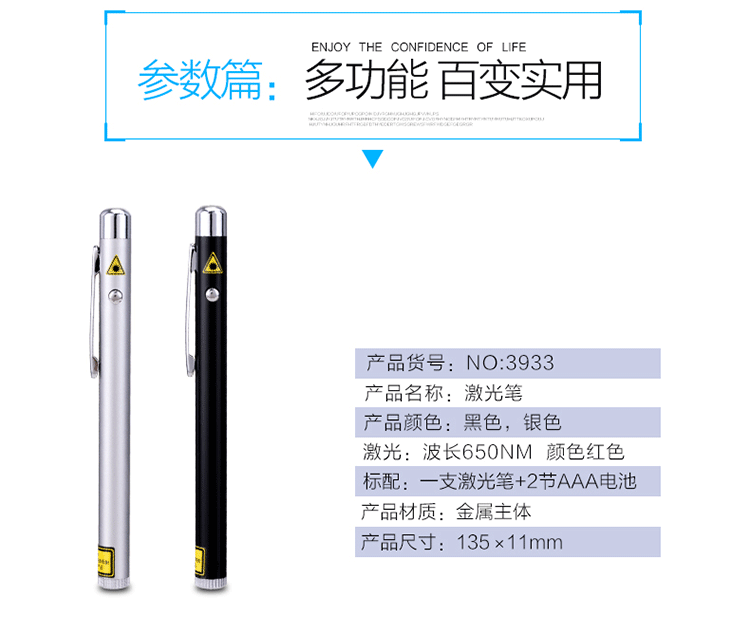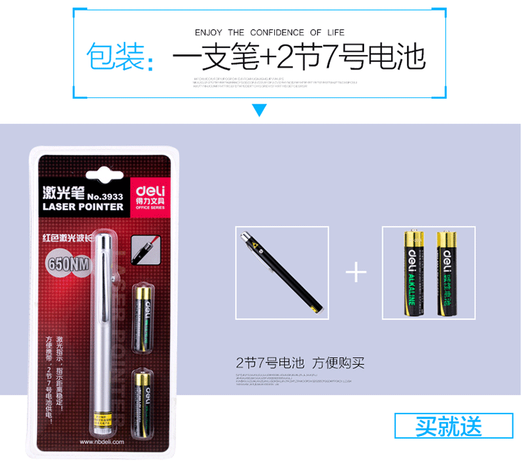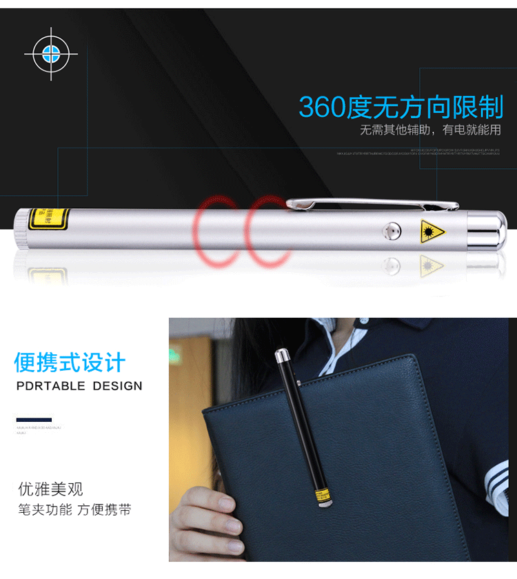 商品名称:得力(deli)3933 钢笔造型便携式激光笔/无线演示器 黑/银随机 红光