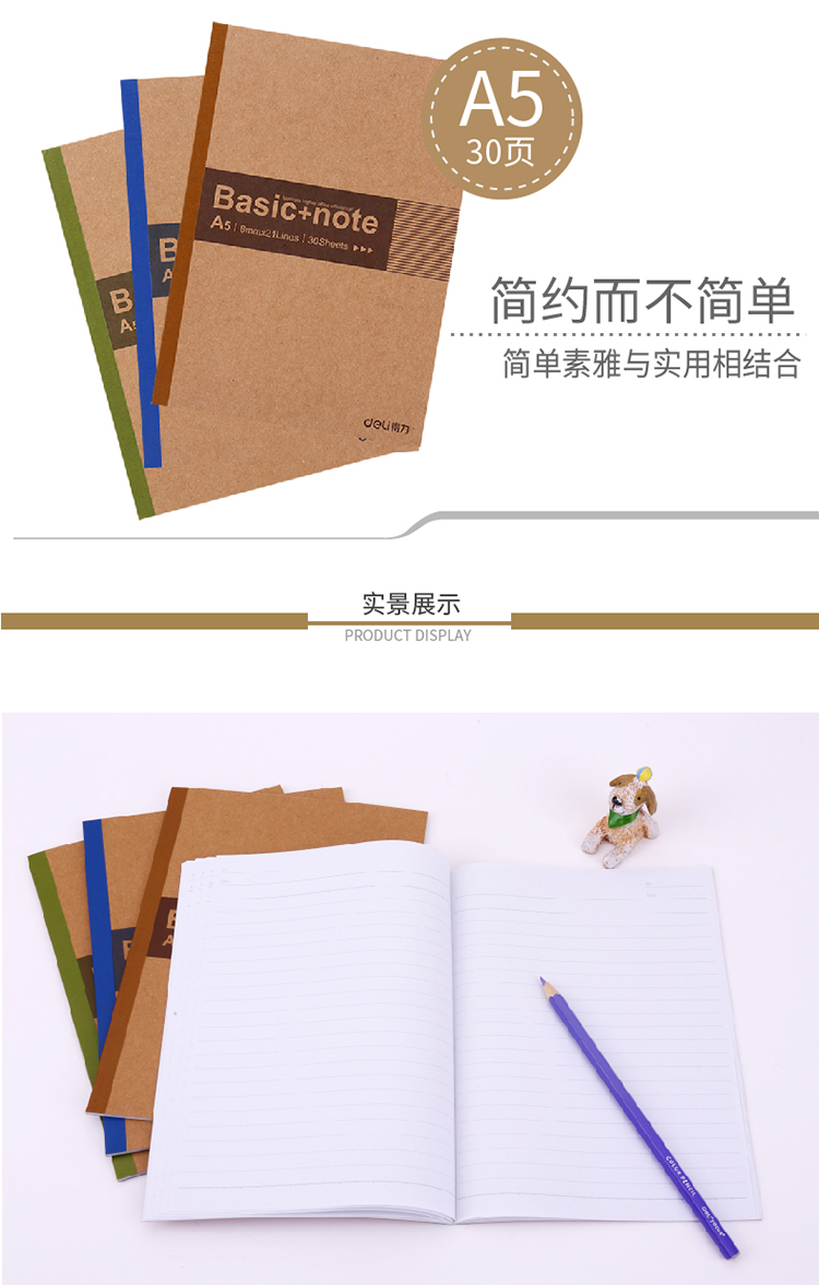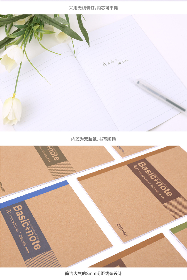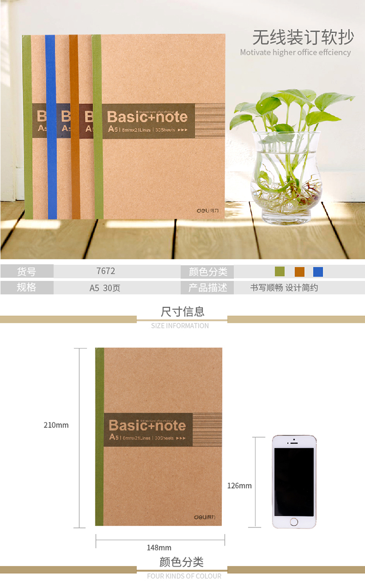 商品名称:得力(deli)7672 A5/30页无线装订软抄本办公记事本 文具笔记本子