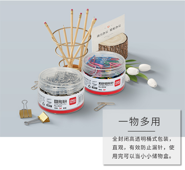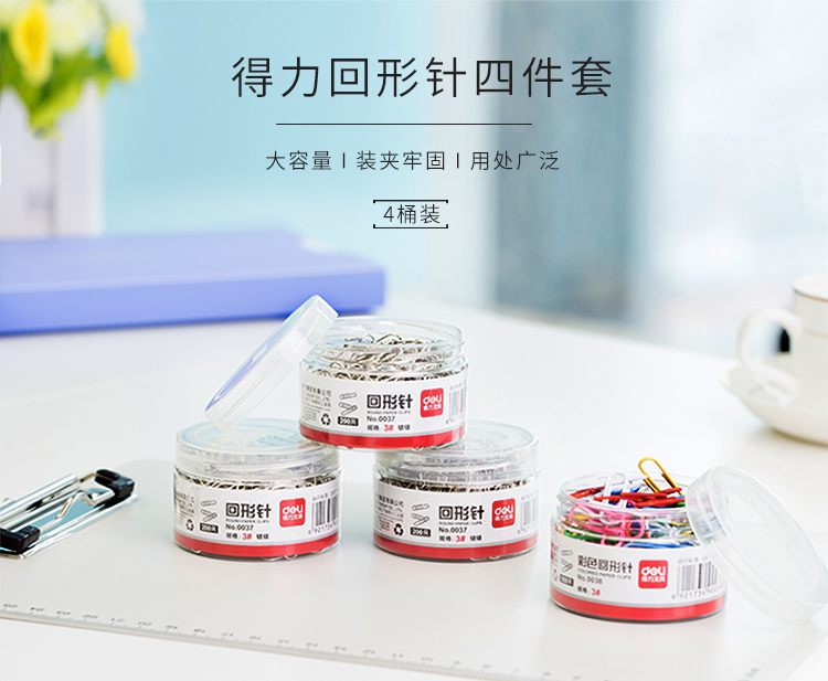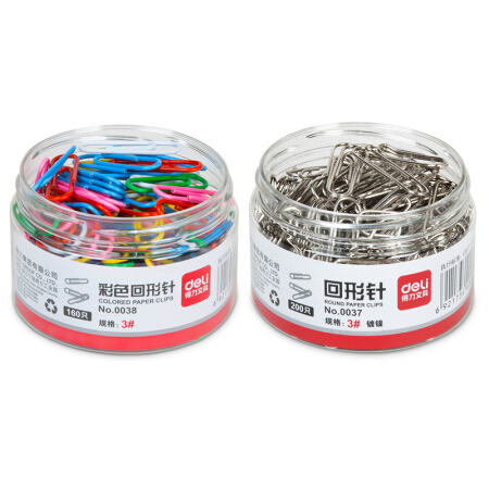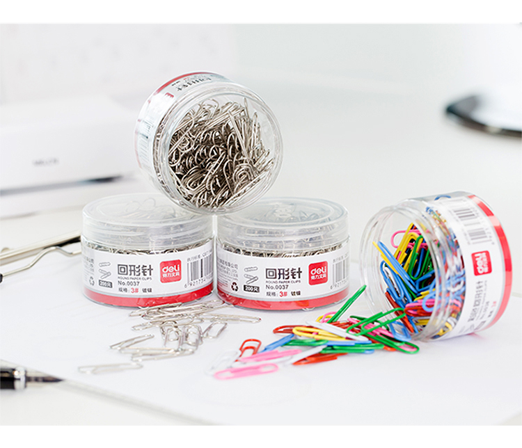 得力(deli)33392 镀镍回形针套装 银色29mm回形针600枚+彩色29mm回形针160枚