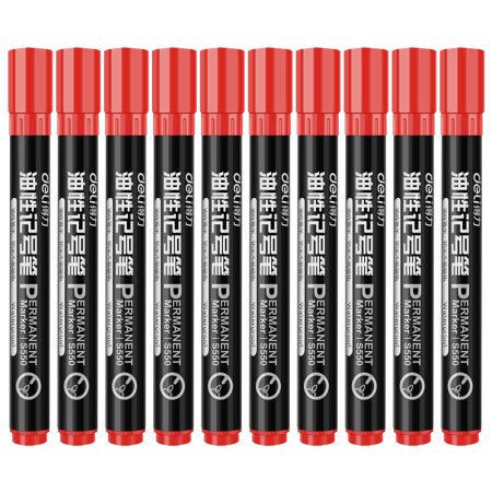 得力S550油性墨水记号笔大头笔 红色 10支/盒 单位:盒