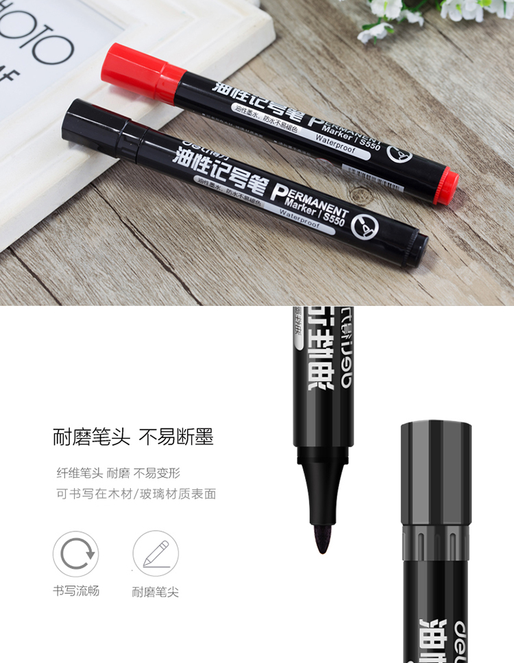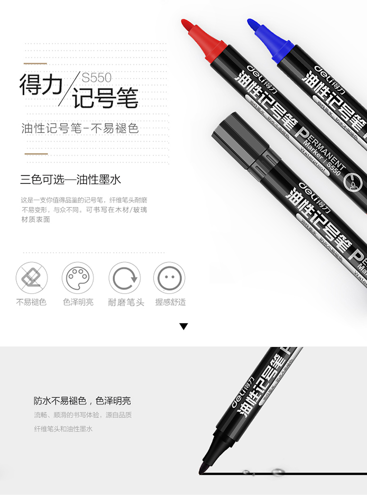 商品名称:得力S550油性墨水记号笔大头笔 红色 10支/盒 单位:盒