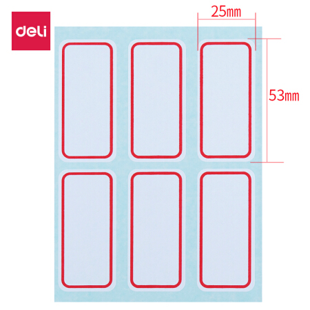 得力(deli)7182标签贴纸不干胶标签贴红色边框(25*53mm)12张/本 25本/包(单位:本)