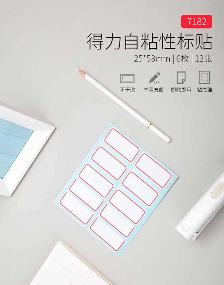 得力(deli)7182标签贴纸不干胶标签贴红色边框(25*53mm)12张/本