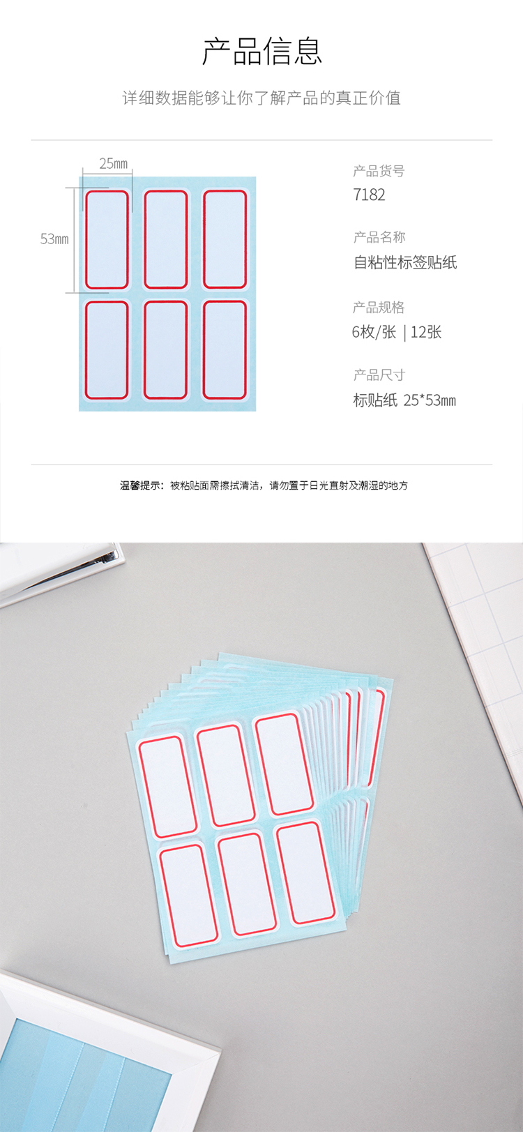 商品名称:得力(deli)7182标签贴纸不干胶标签贴红色边框(25*53mm)12张/本 25本/包(单位:本)