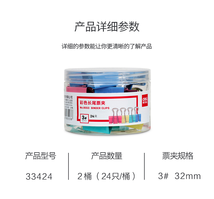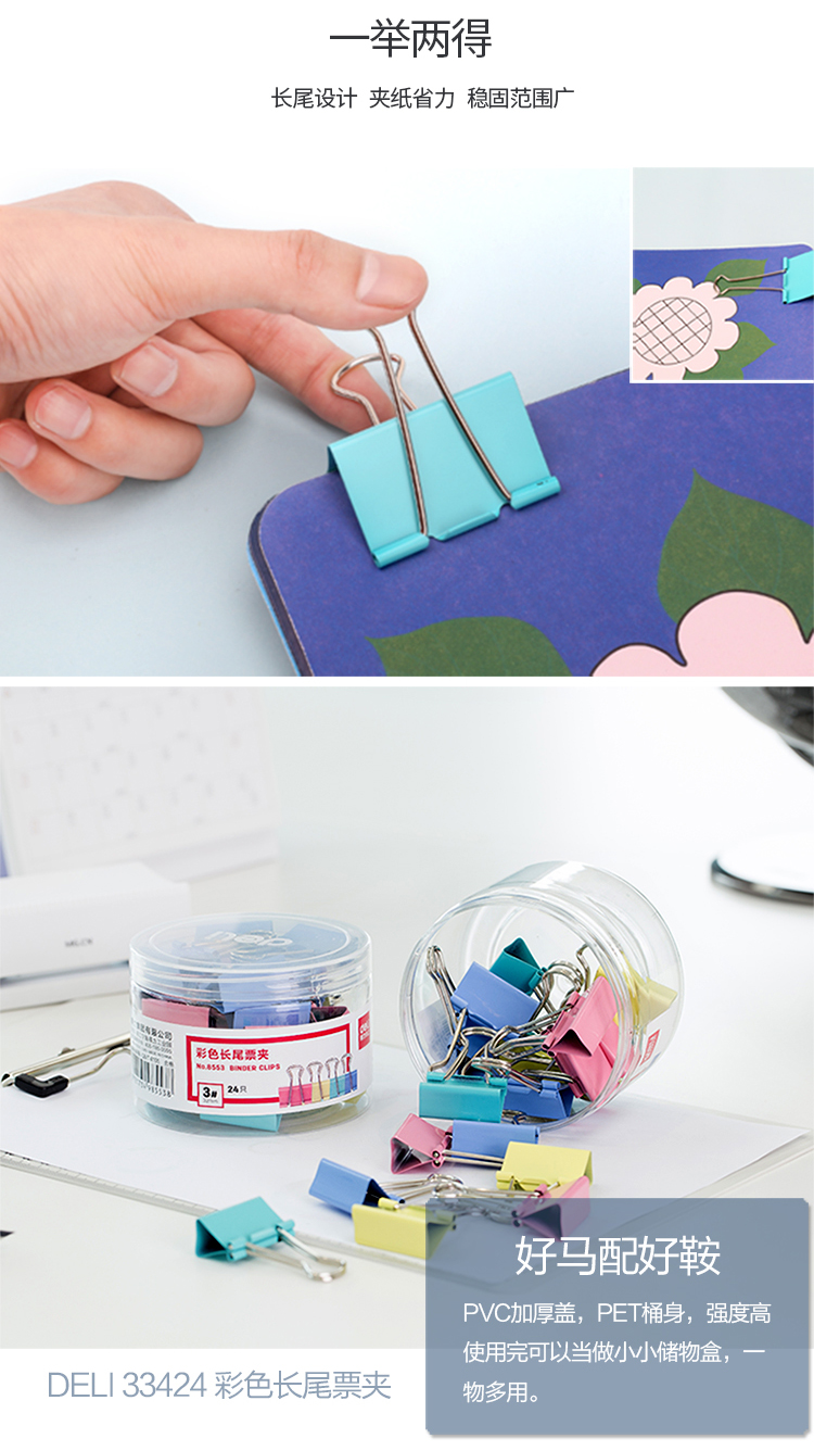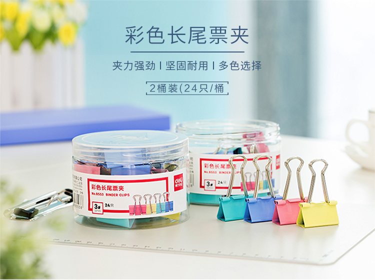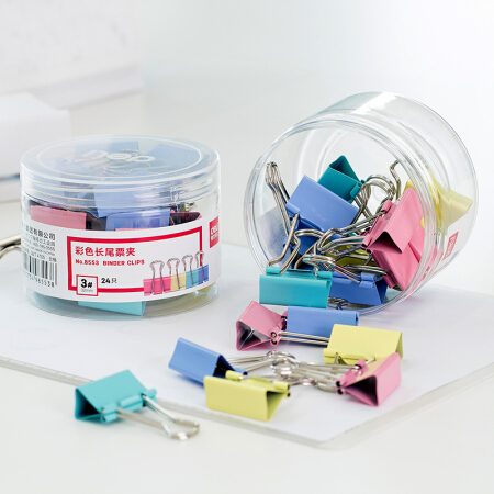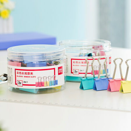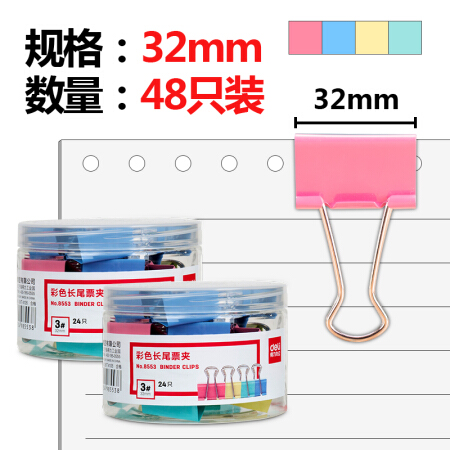 商品名称:得力(deli)48只32mm彩色长尾票据夹 金属铁夹子燕尾夹33424