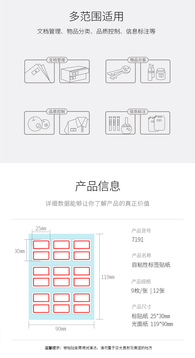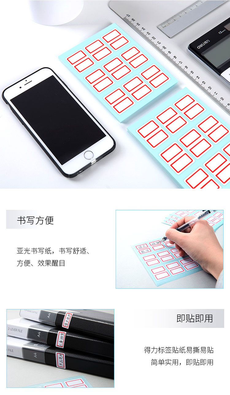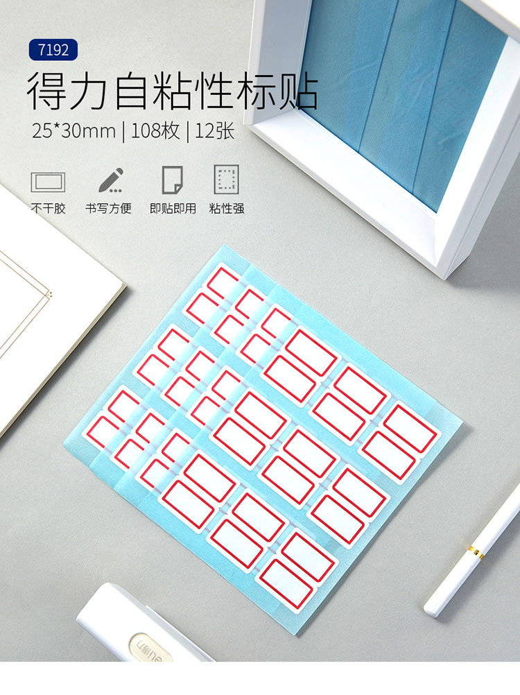 商品名称:得力7191自粘性标贴(白)25*30mm(本) 9枚/张 12张/本