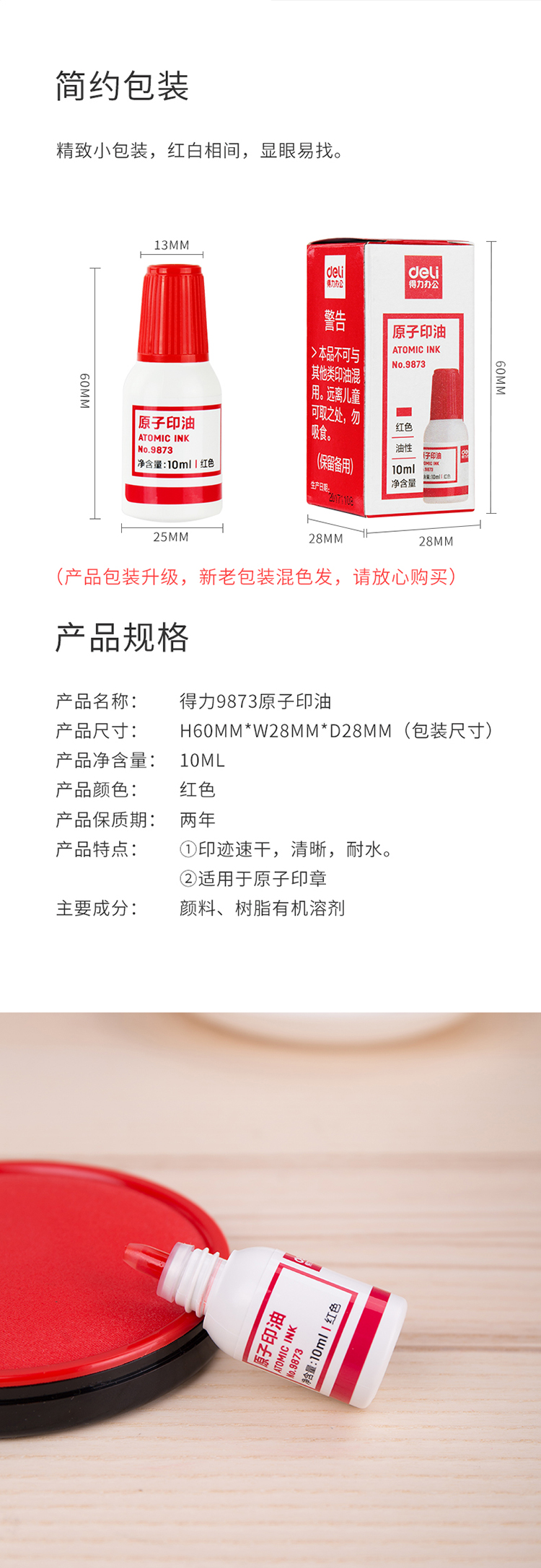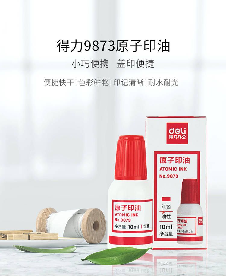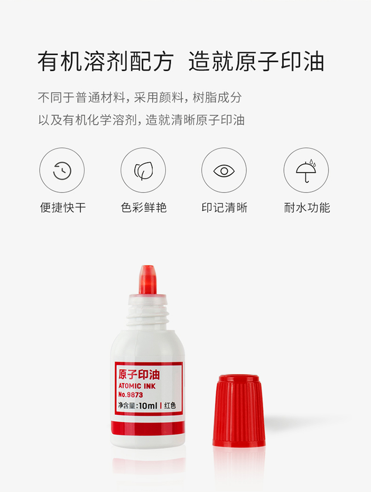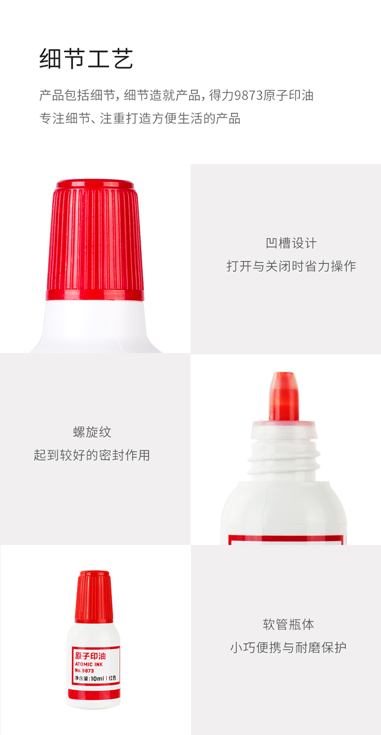 商品名称:得力(deli)10ml财务印章原子印油 红色原子印章油 9873