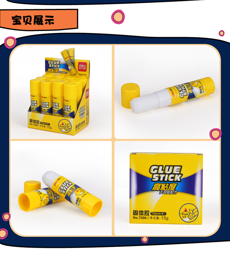 商品名称:得力(deli)7090强粘性 PVP固体胶/固体胶胶棒15g 12支/盒