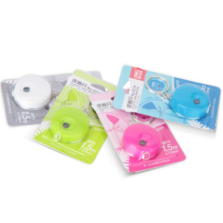 得力(deli) 8214 糖果色迷你便携小皮卷尺 颜色随机 1.5米 创意钥匙扣
