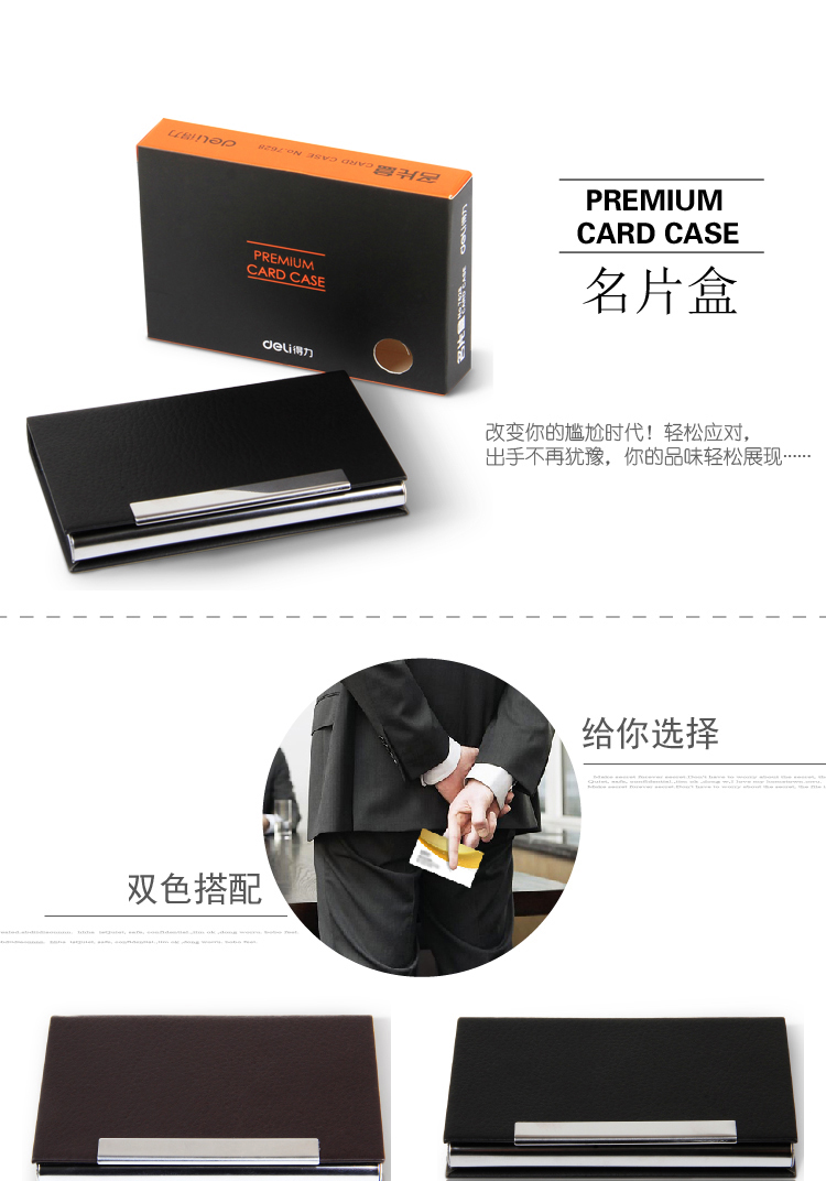 商品名称:得力(deli)7628便携商务名片盒 男女办公皮面名片夹 颜色随机