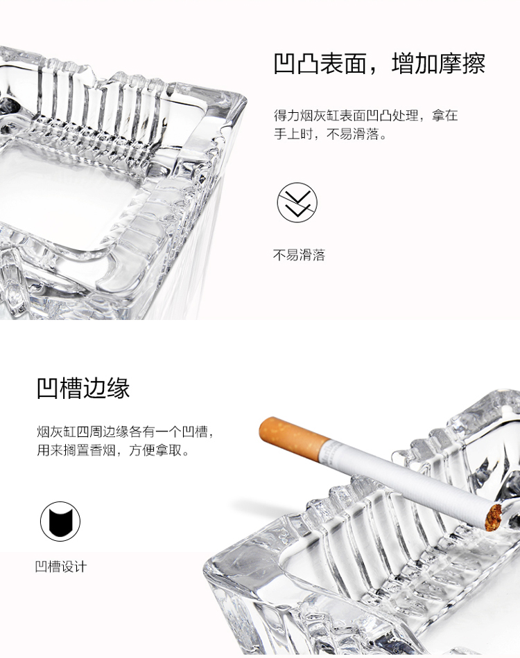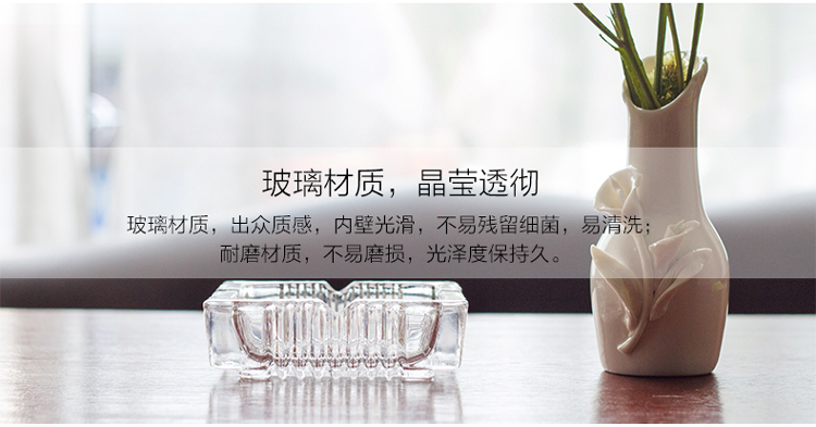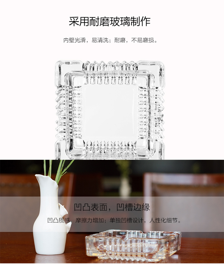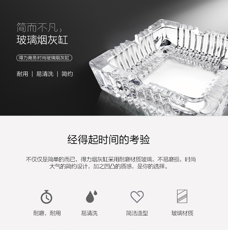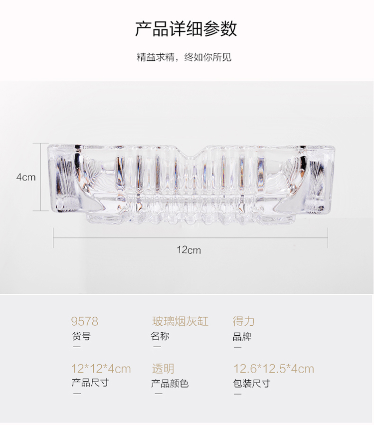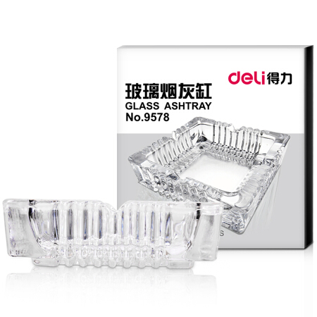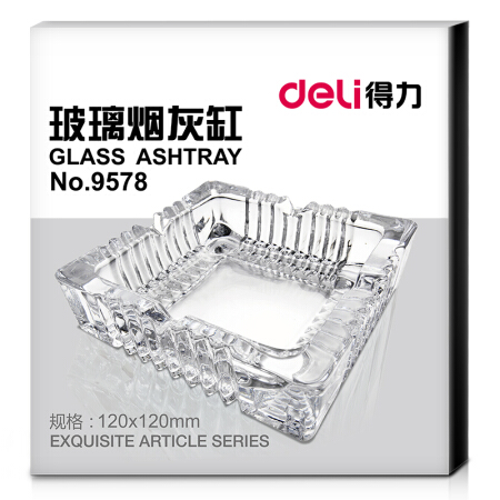商品名称:得力(deli)120*120mm中号欧式方形玻璃烟灰缸 茶几摆件9578