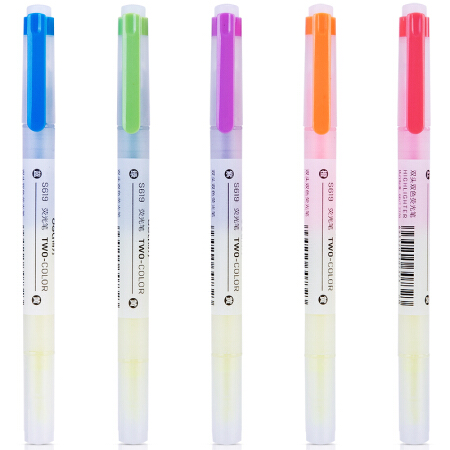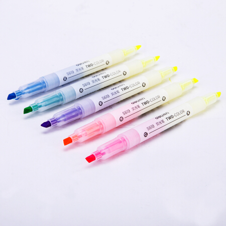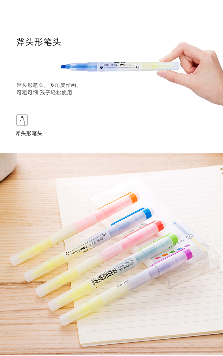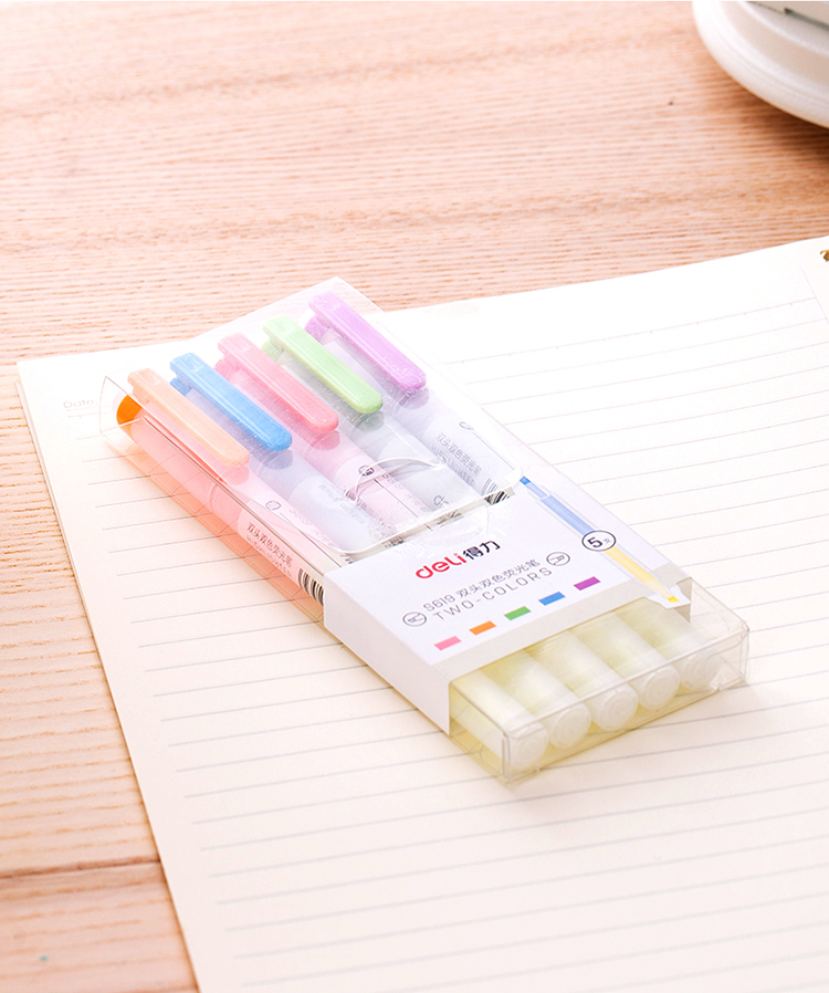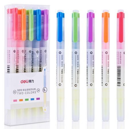 得力S619双头双色荧光笔 混色 5支/盒 单位:盒