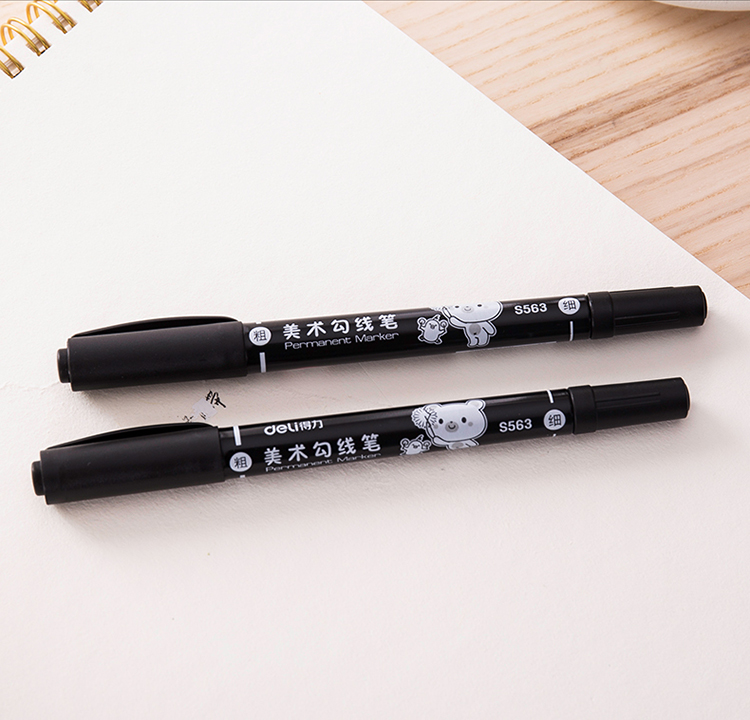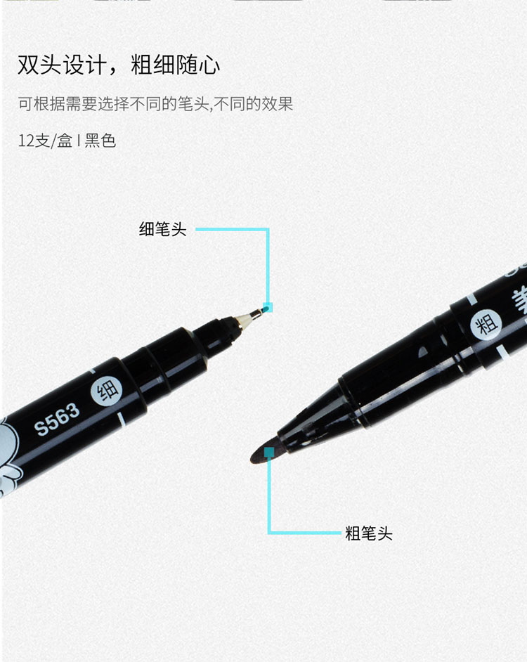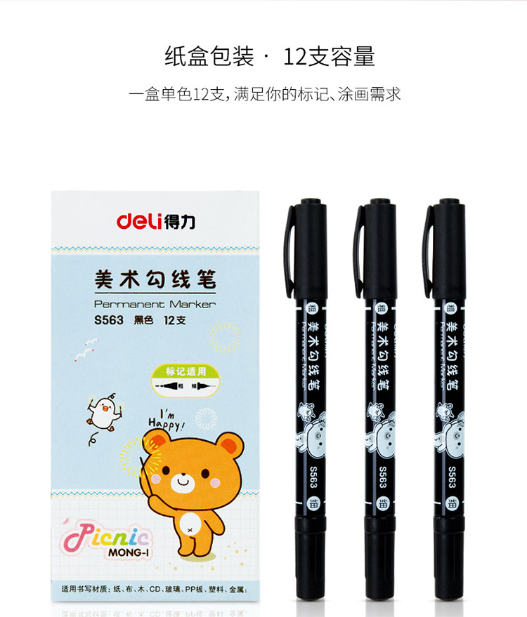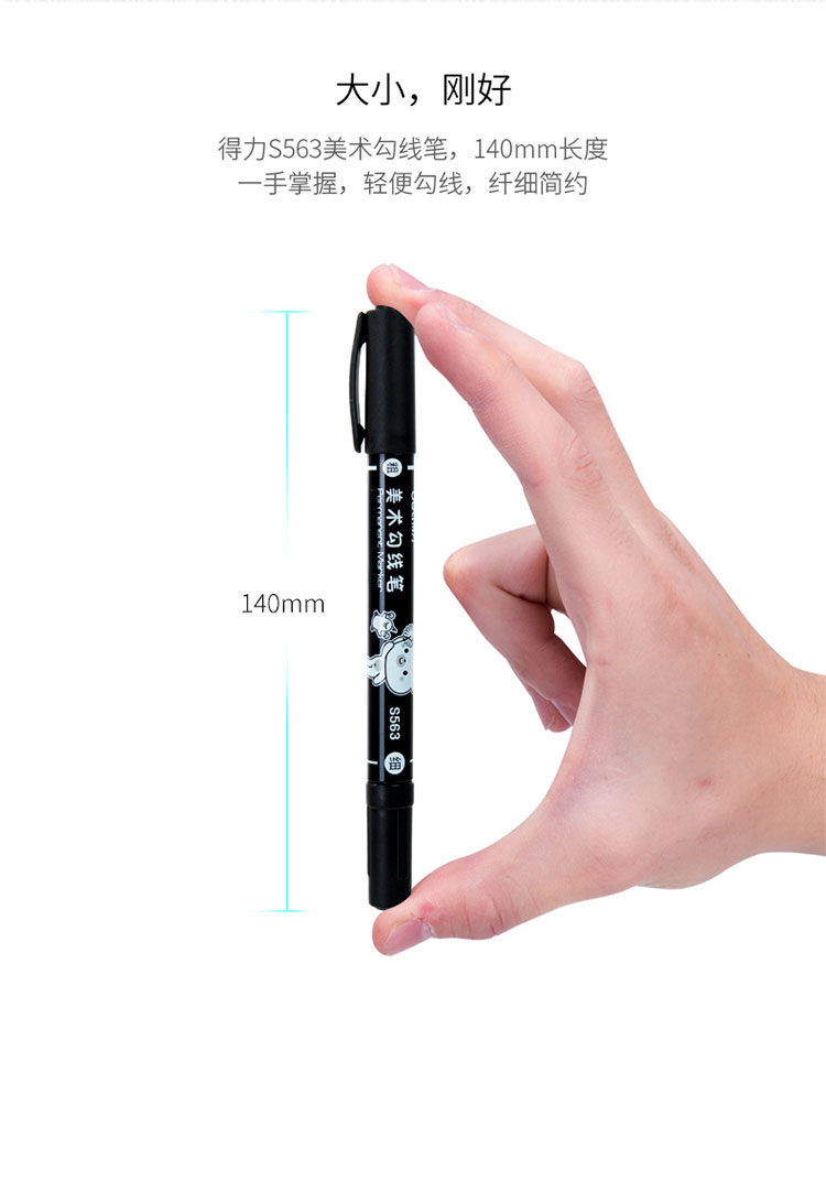 商品名称:得力S563双头美术勾线笔 黑色12支/盒