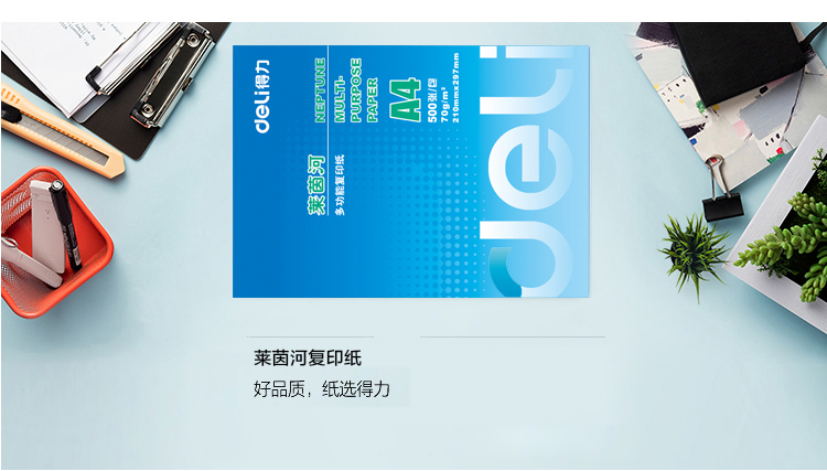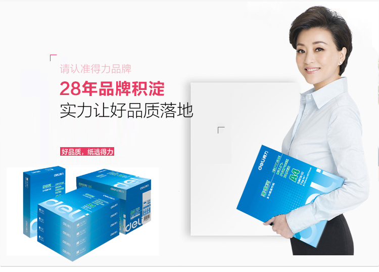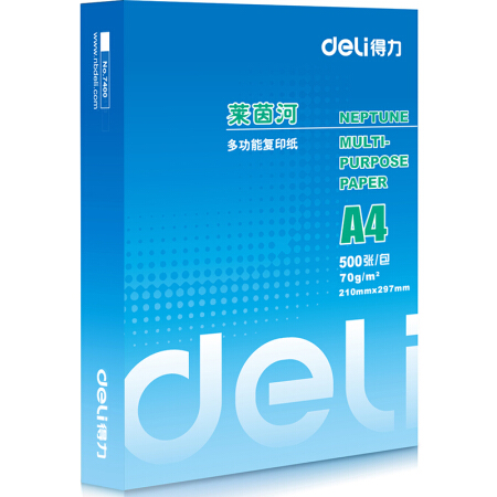商品名称:得力(deli) 7400A4 莱茵河复印纸 70g 500张/包 单包装