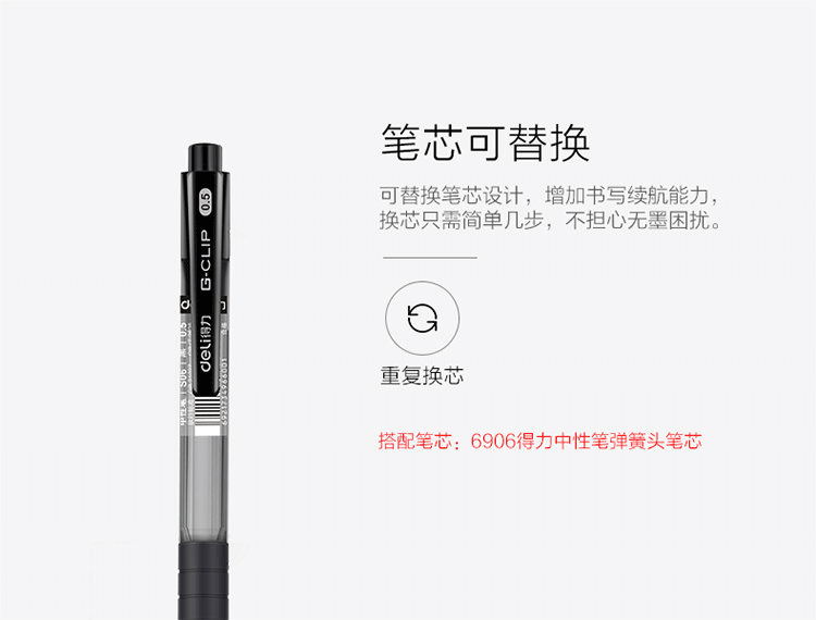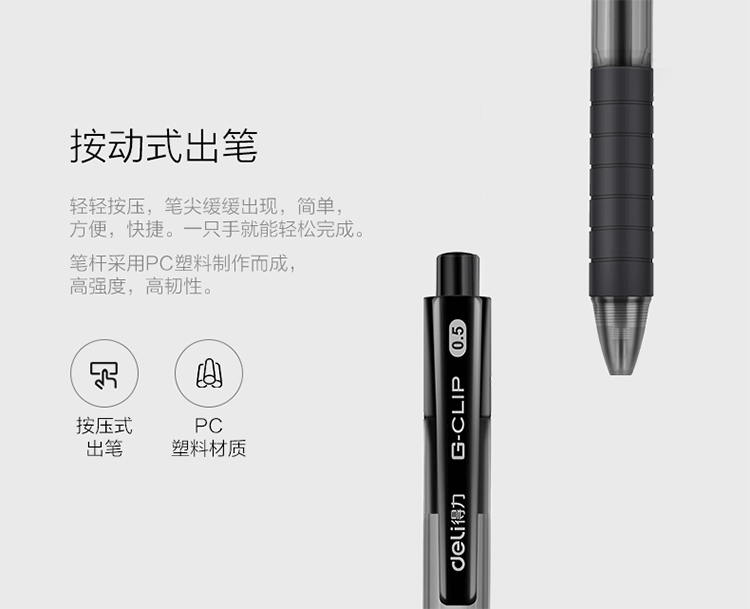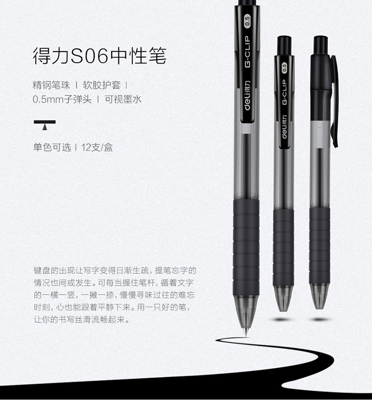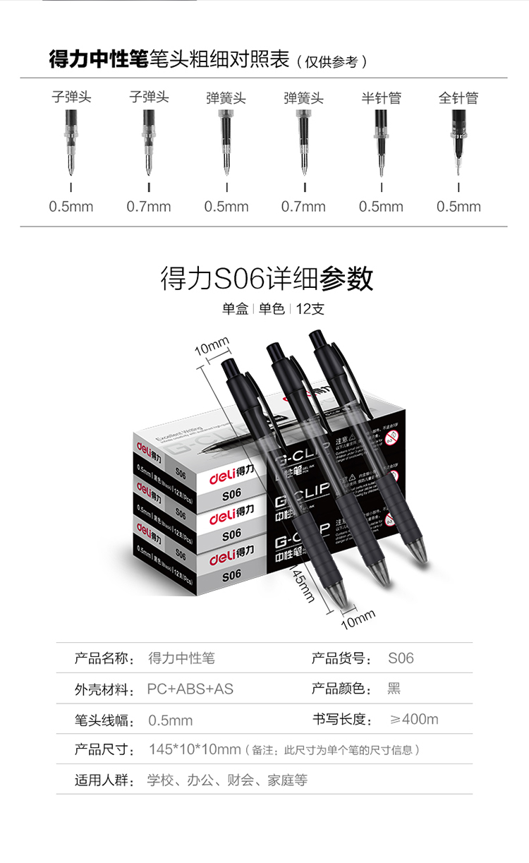 商品名称:得力(deli)S06 0.5mm黑色按动中性笔水笔签字笔 12支/盒