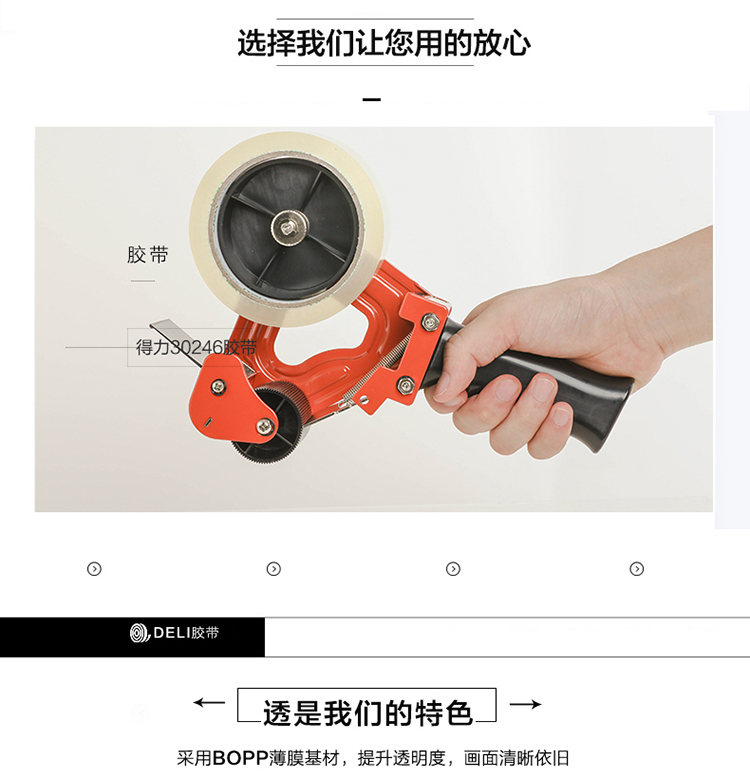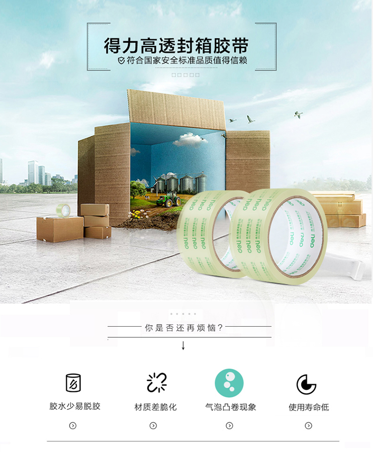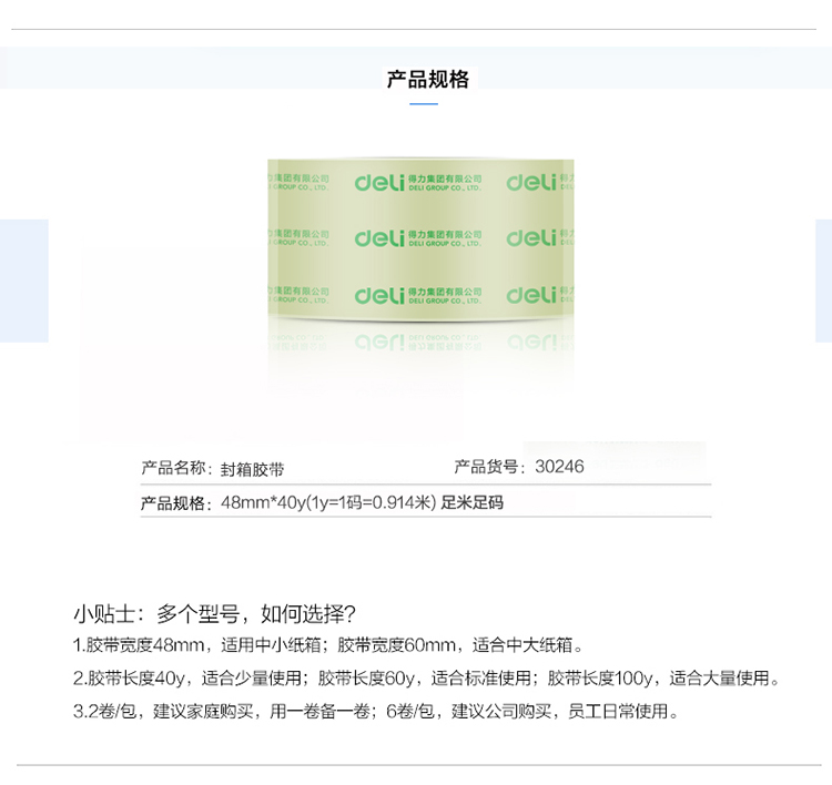商品名称:得力(deli)30246 高透明度封箱胶带48mm*40y(36.6米) 1卷装