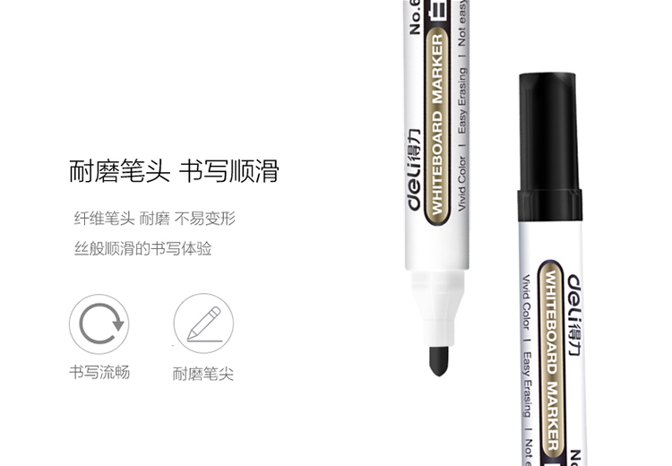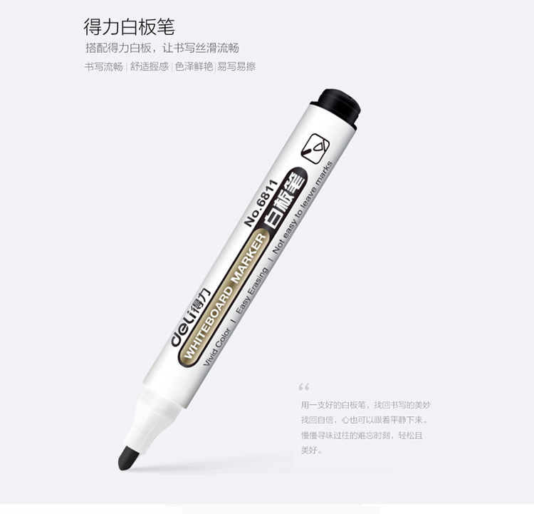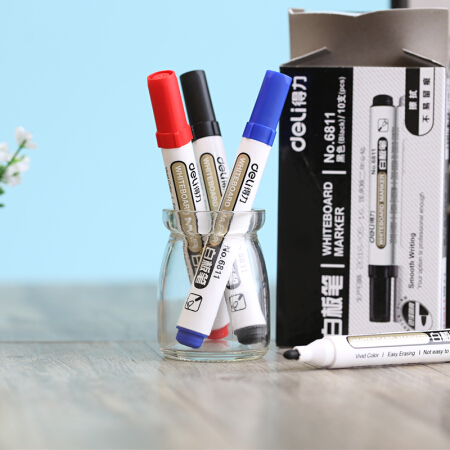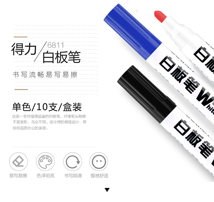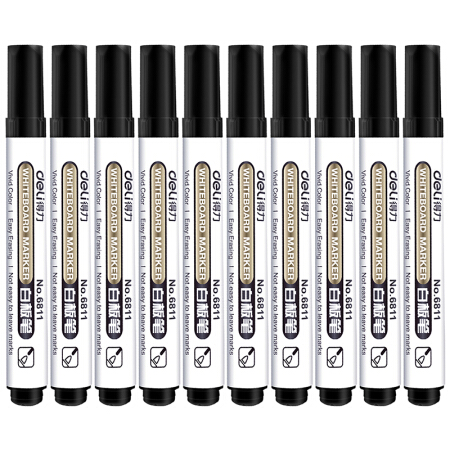 商品名称:得力(deli)6811黑色白板笔 可擦易擦 10支/盒
