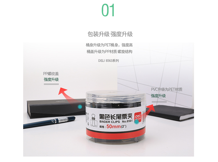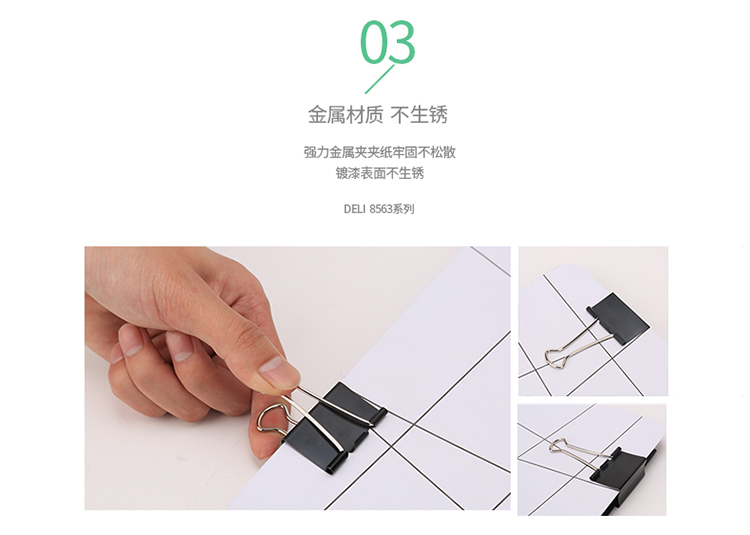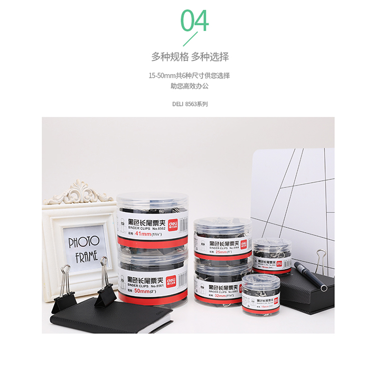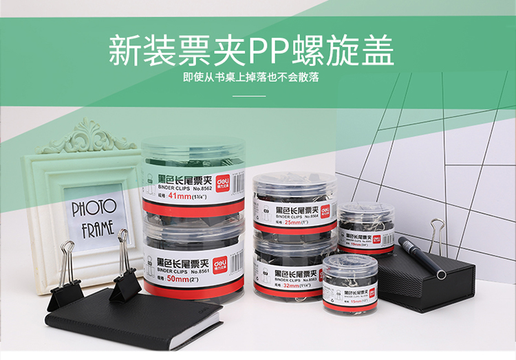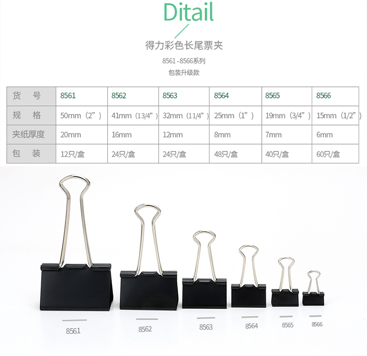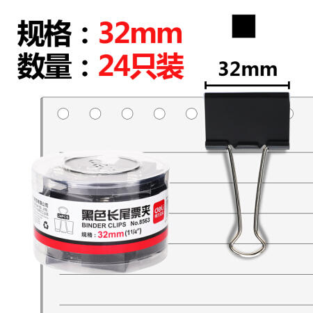 商品名称:得力 8563 黑色长尾票夹 32mm中号 24只/筒