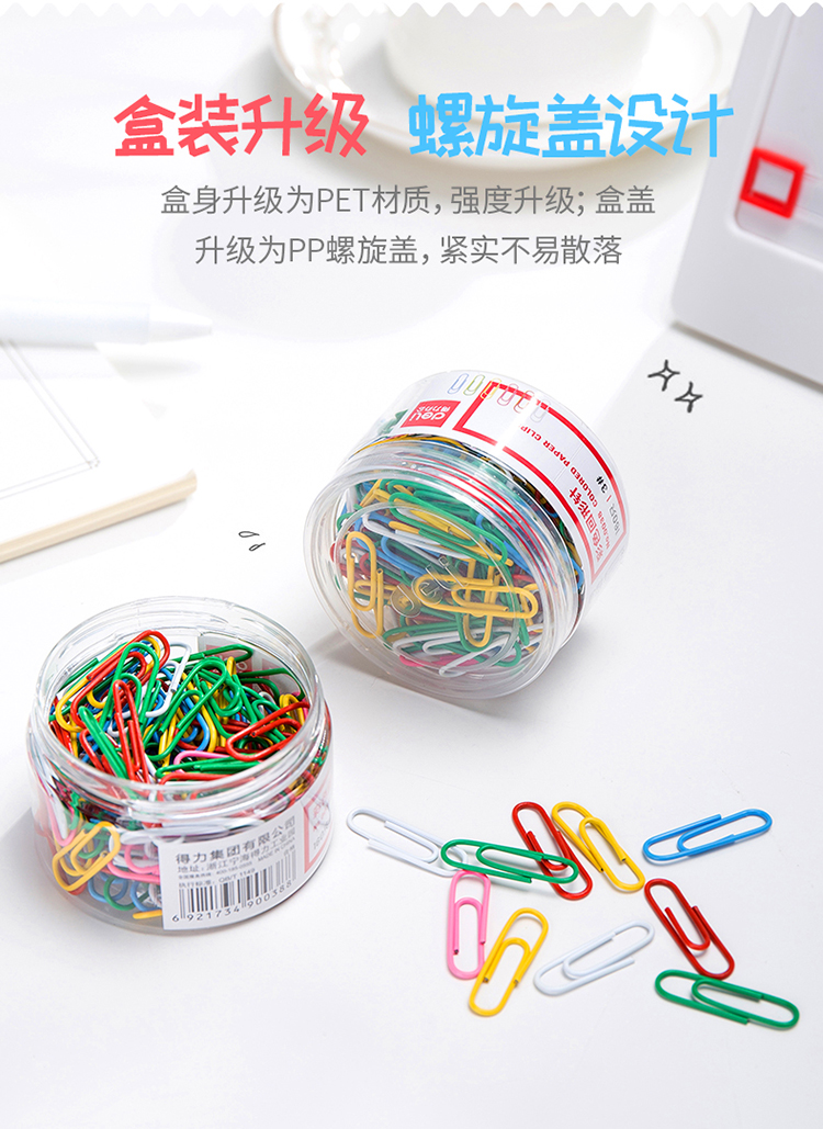 得力(deli)0038金属曲别针160枚29mm彩色回形针